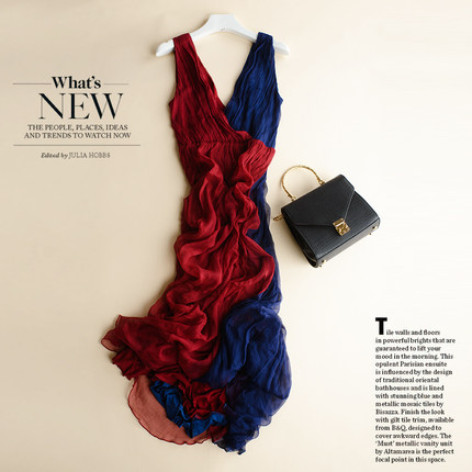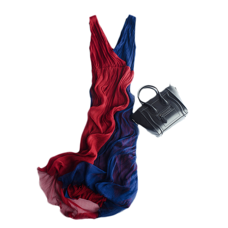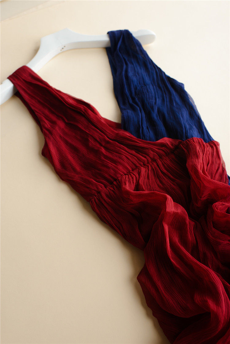 真丝连衣裙长裙女夏季新款女装长款气质拼接撞色V领桑蚕丝裙子