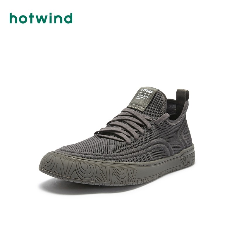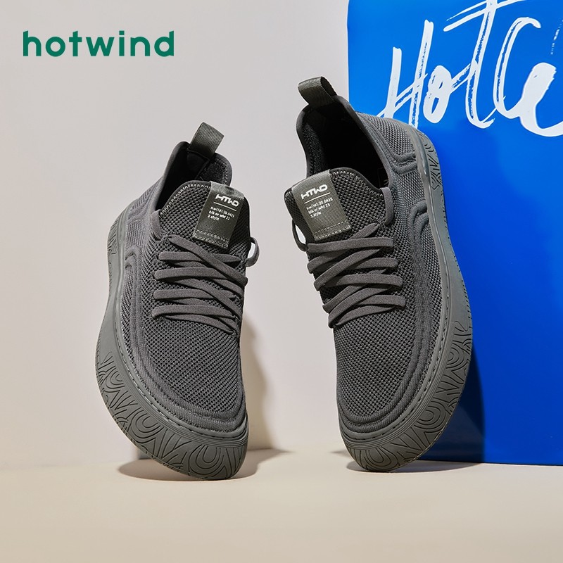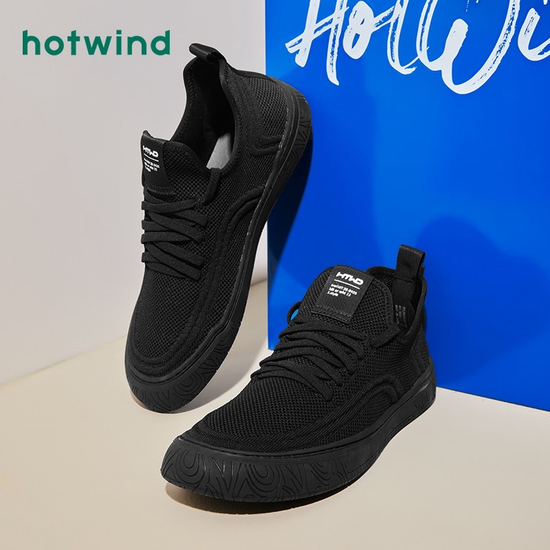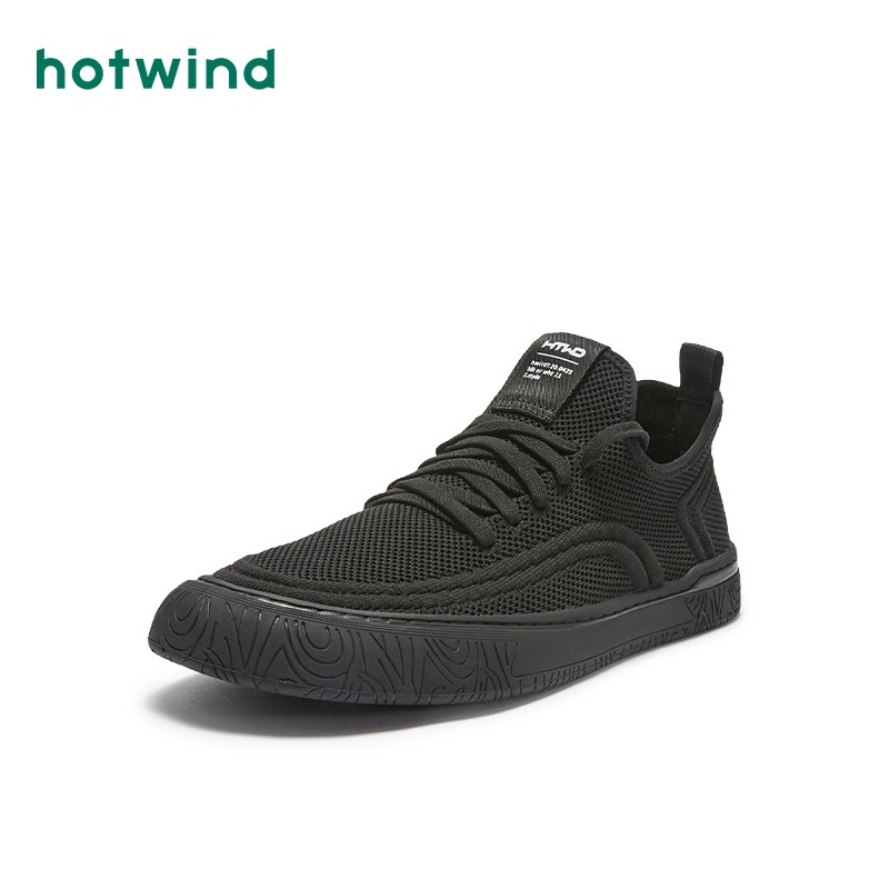 热风2024年秋季新款男士时尚舒适百搭运动休闲鞋纯色网面休闲鞋男