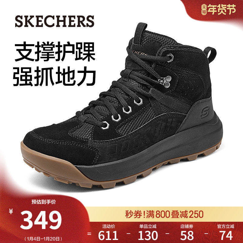 斯凯奇雪地靴春季男鞋厚底高帮靴休闲运动鞋耐磨户外越野靴春靴