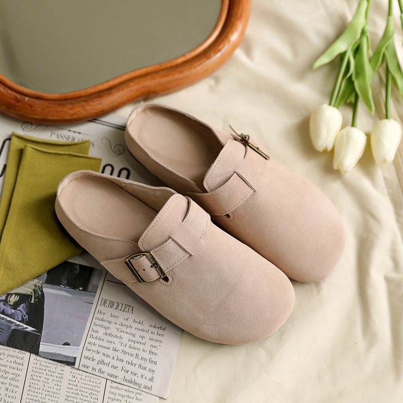 脱毒家 勃肯鞋拖/真皮舒适外穿拖鞋圆头包头女鞋平底皮拖懒人鞋女