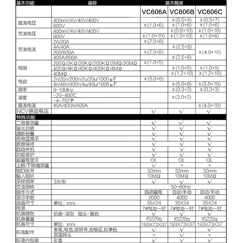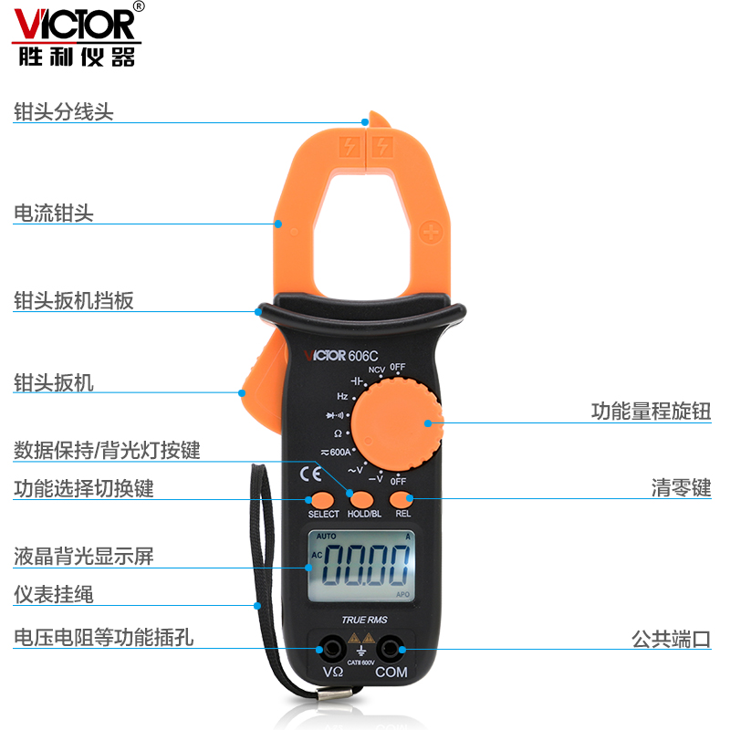 胜利 交直流钳表VC606C钳形电流表钳形万用表数字钳形表电工钳表