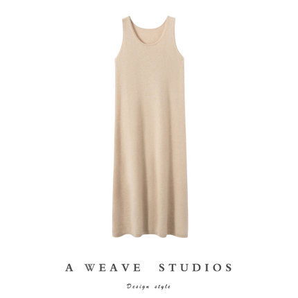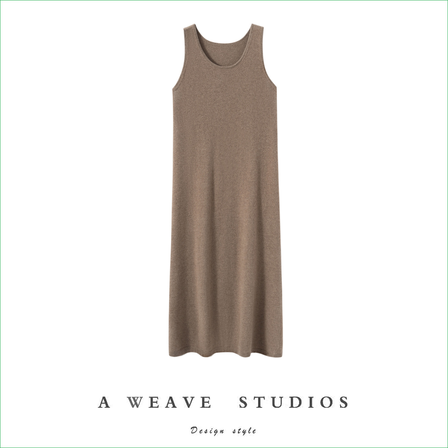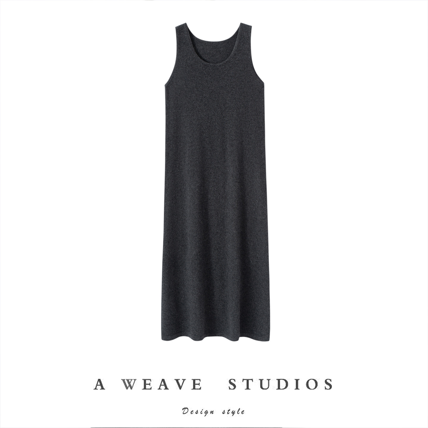 秋冬新款100%山羊绒吊带背心U领连衣裙轻奢高级感针织无袖A字裙子