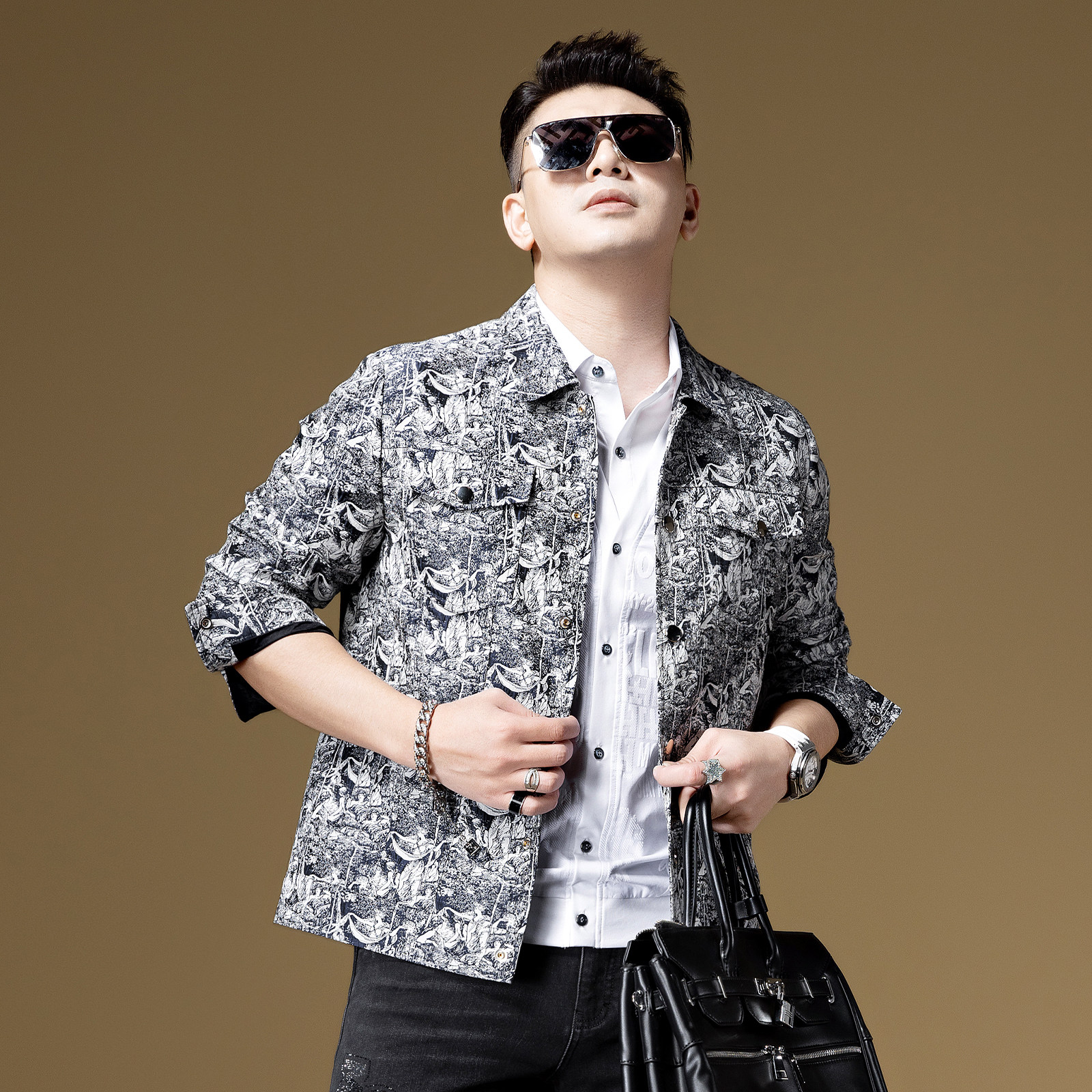 bm春季潮流人物图案满花男夹克