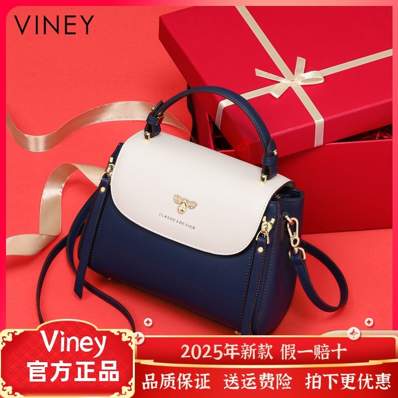 Viney手提包包女士2025新款夏季斜挎包水桶包真皮高级感单肩女包