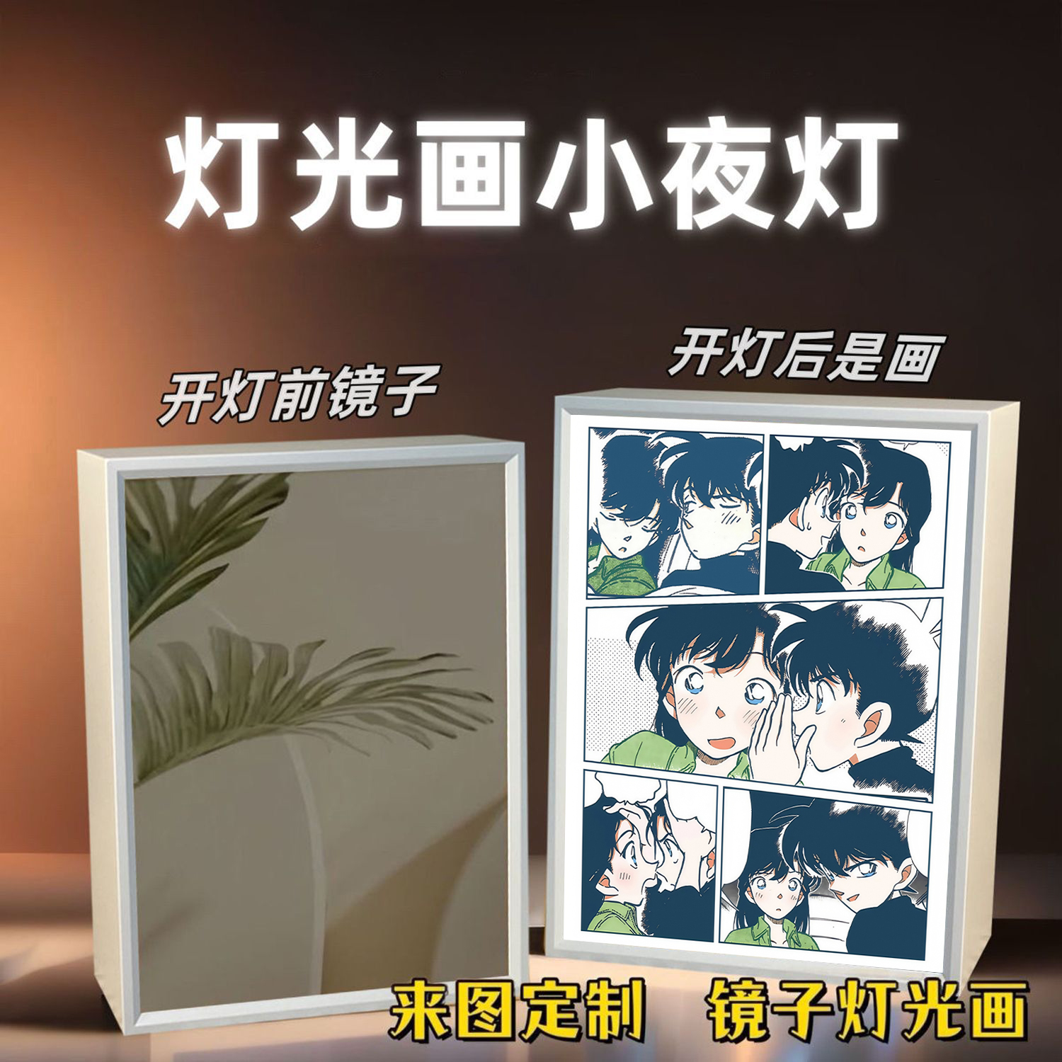 名侦探柯南手办镜子灯光画工藤新一怪盗基德周边卧室灯光画礼物