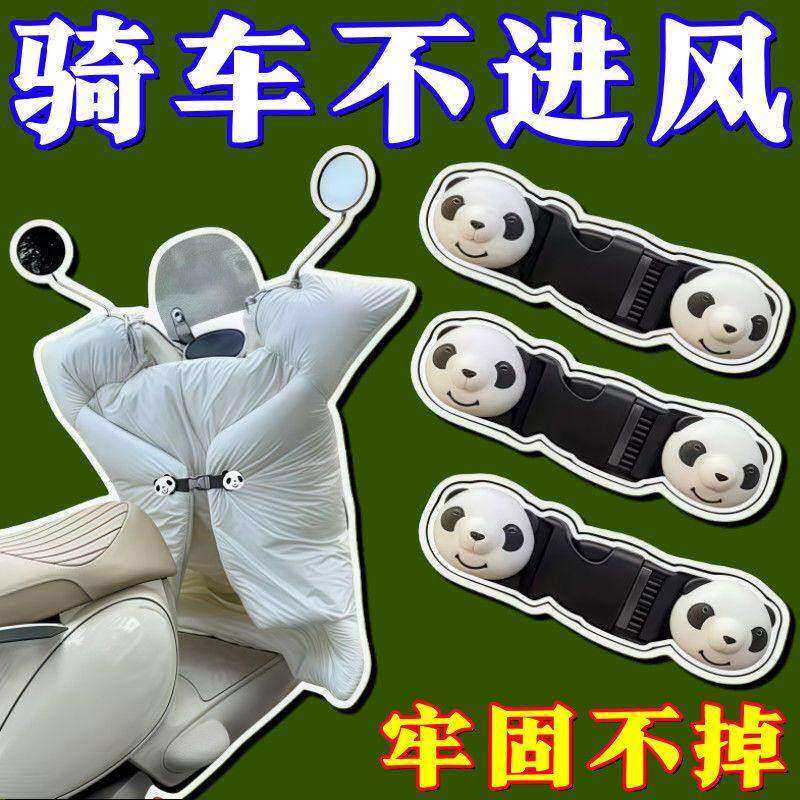 电动车挡风被收纳固定插扣新款可爱熊猫扣可拆卸调节收纳扣固定夹