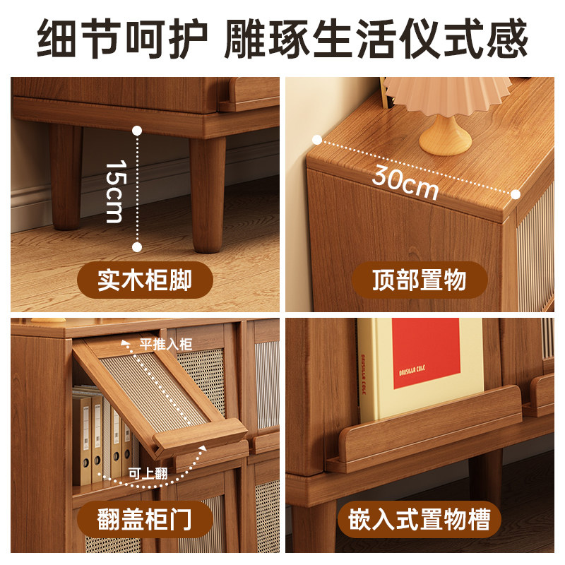实木斗柜家用床尾柜中古风矮柜沙发边柜靠墙模块组合柜卧室储物柜