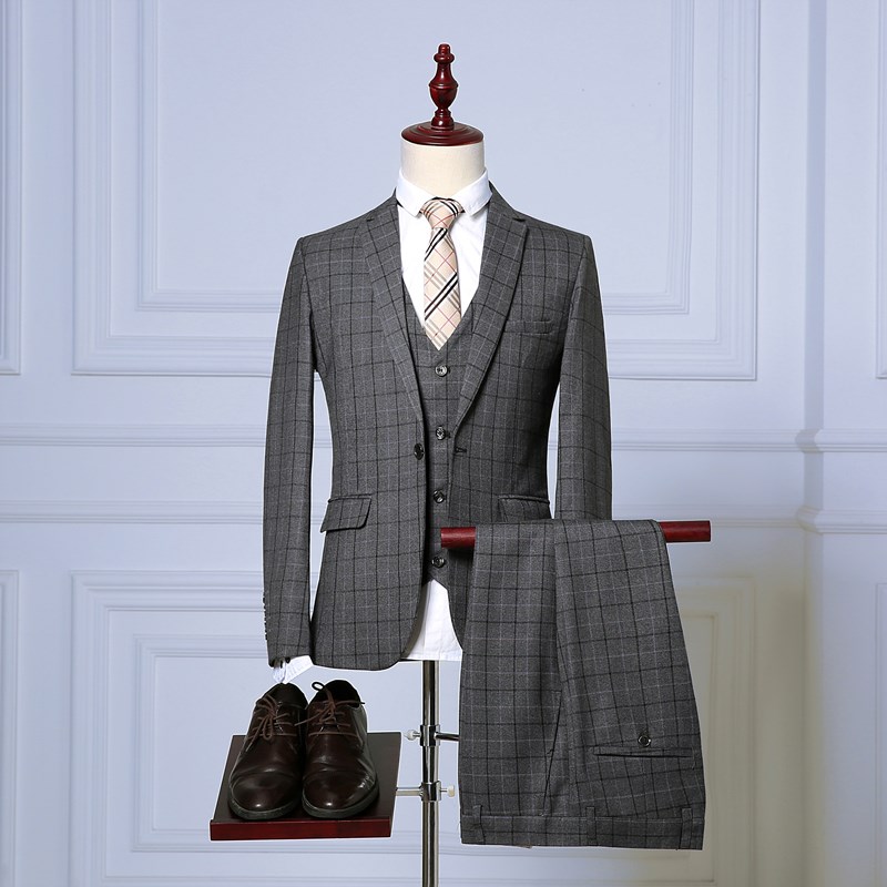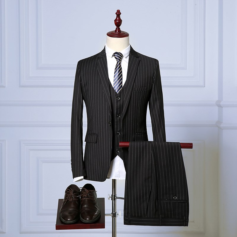 西服套装男士商务正装三件套修身新郎结婚礼服英伦休闲条纹小西装