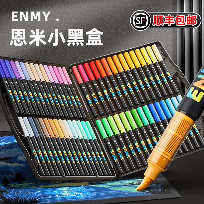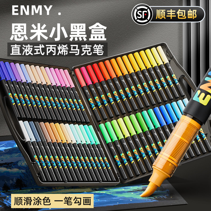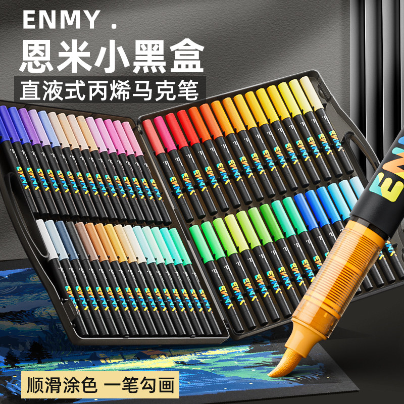 恩米小黑盒直液式丙烯马克笔软头可控墨彩色小学生美术专用60色enmy画笔48色幼儿园画画80颜色儿童无毒水彩笔