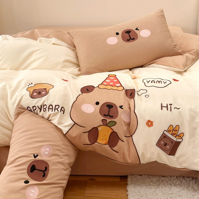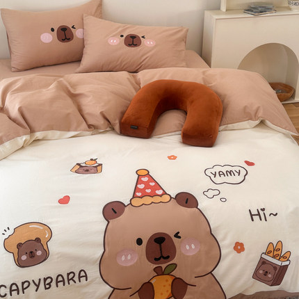 卡皮巴拉全棉卡通刺绣床上四件套纯棉儿童床品被套床单人三件套