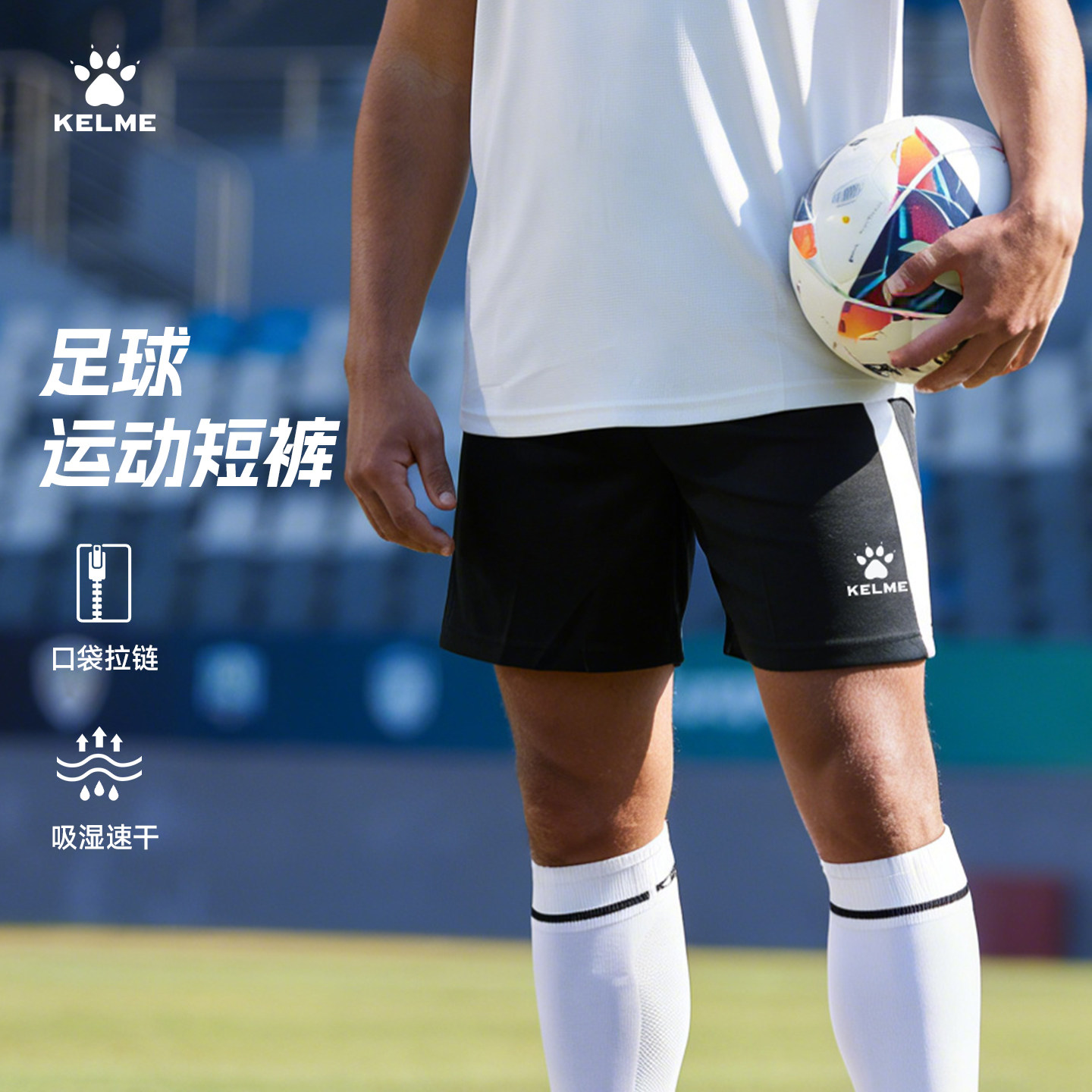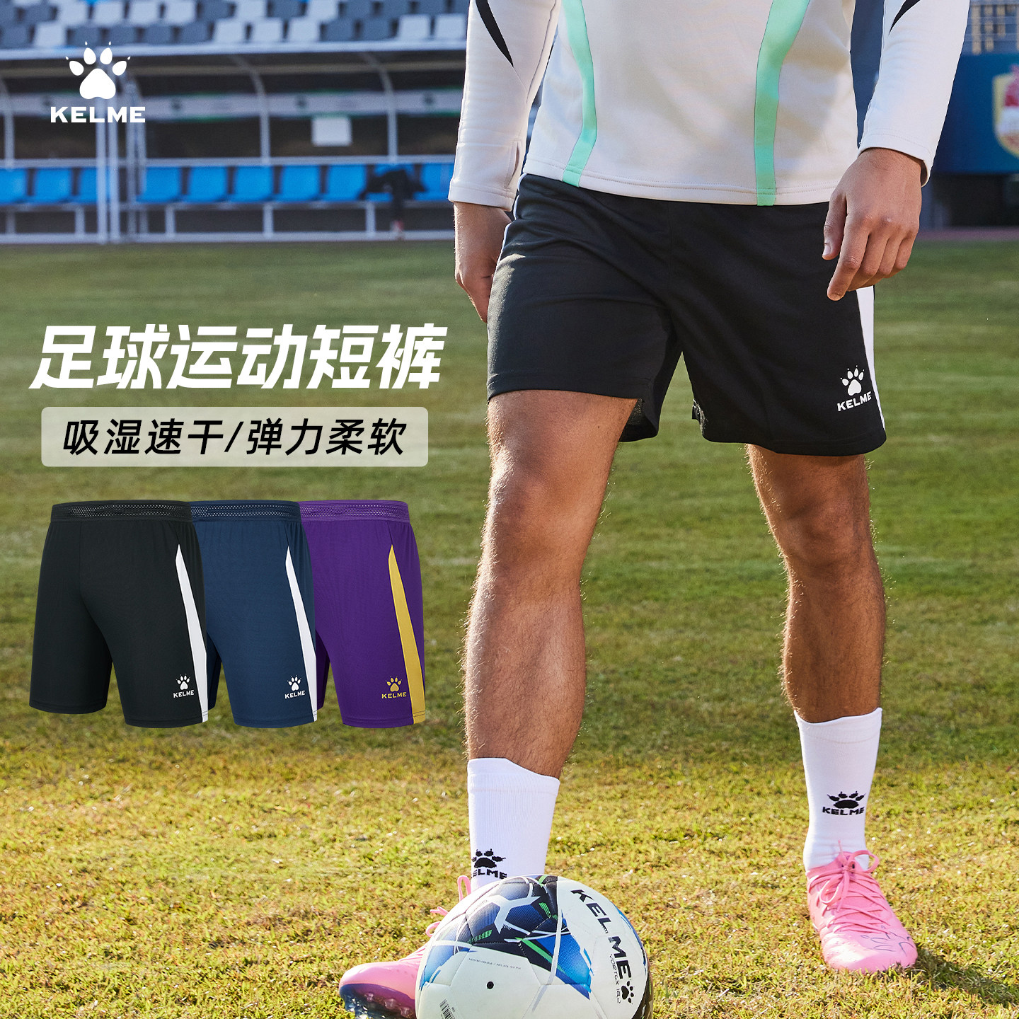 KELME卡尔美足球运动短裤男 透气比赛跑步针织五分裤儿童快干裤子