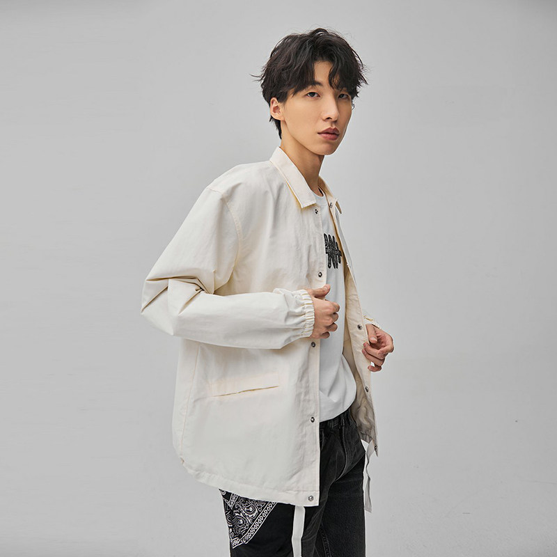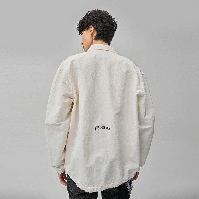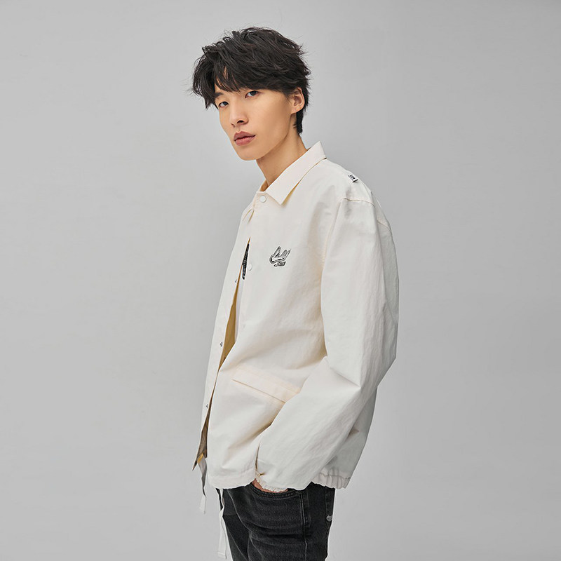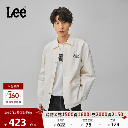 Lee商场同款舒适版书法风徽标本白色抽绳扣男夹克外套休闲潮流