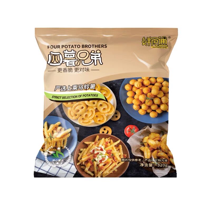 鲜食通四薯兄弟薯条薯饼薯角薯球组合320g冷冻半成品儿童油炸小食