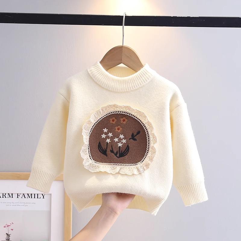 女童毛衣秋冬季2024新款洋气宝宝儿童装秋冬款加绒加厚针织打底衫