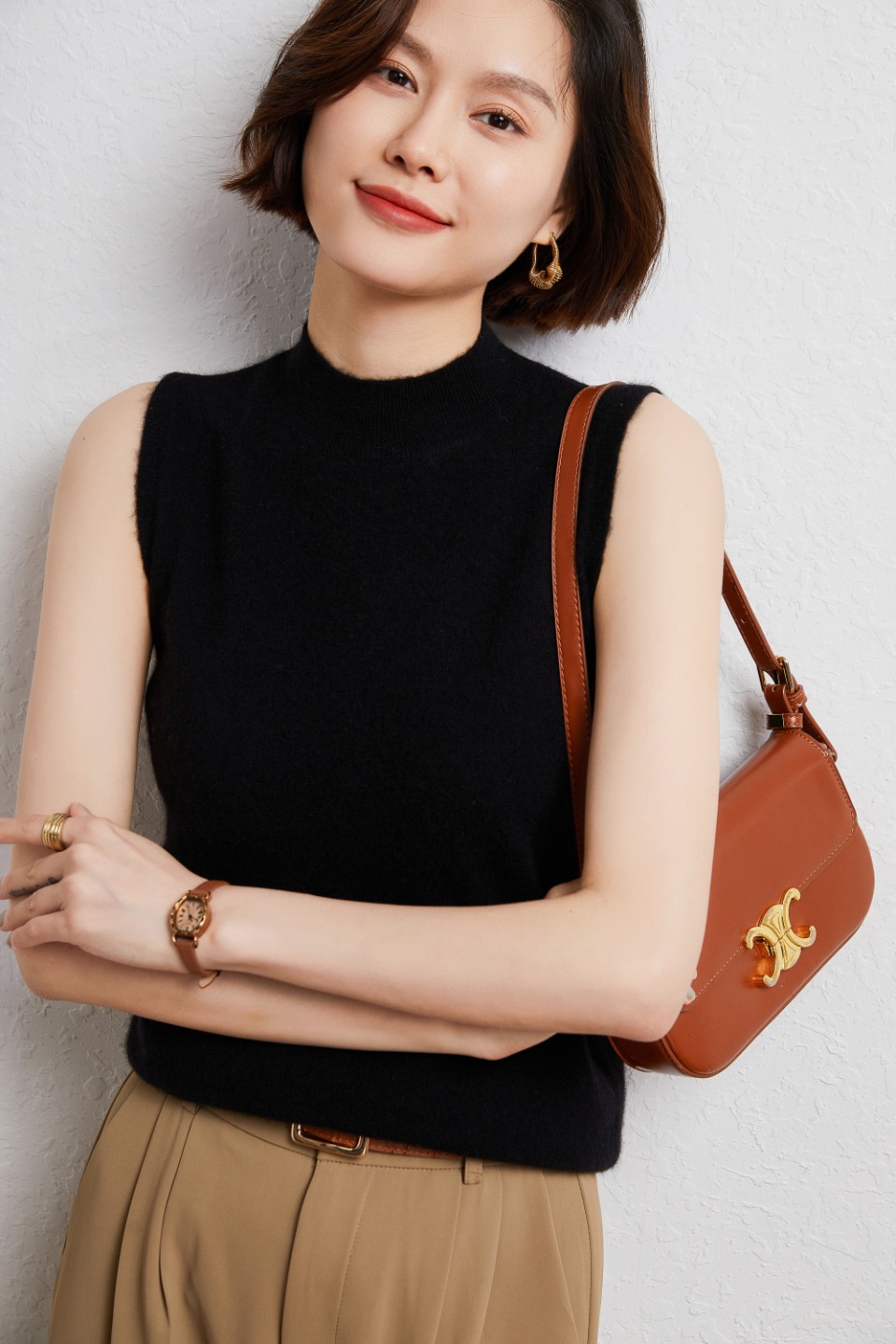 羊绒衫女鹿王半高领无袖针织背心打底衫山羊绒保暖毛衣马甲内搭秋