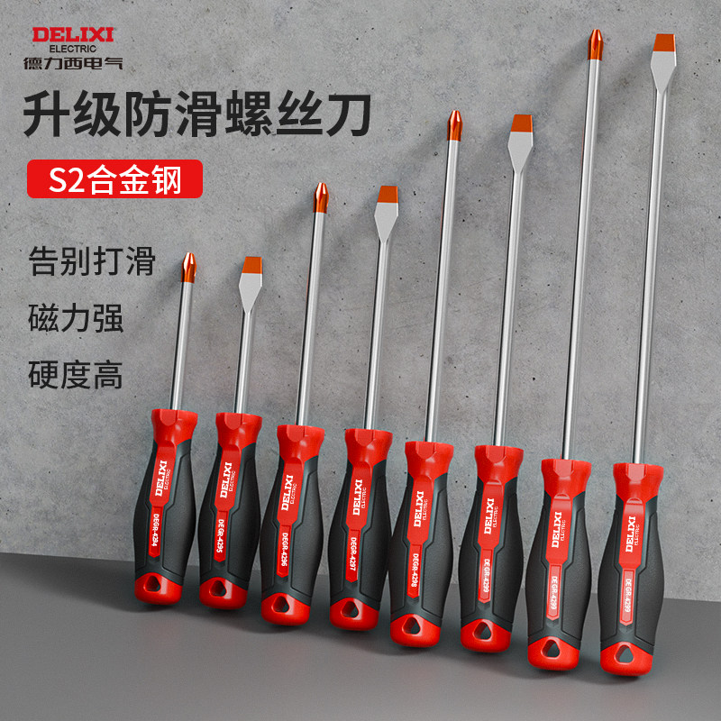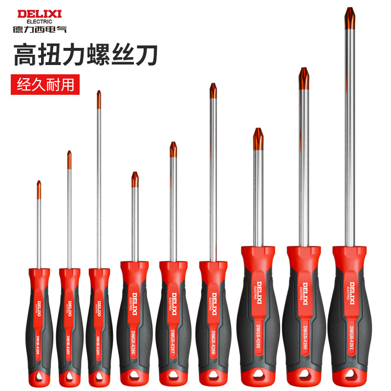 德力西螺丝刀十字一字工具带强磁高硬度平口改锥小两用多功能起子