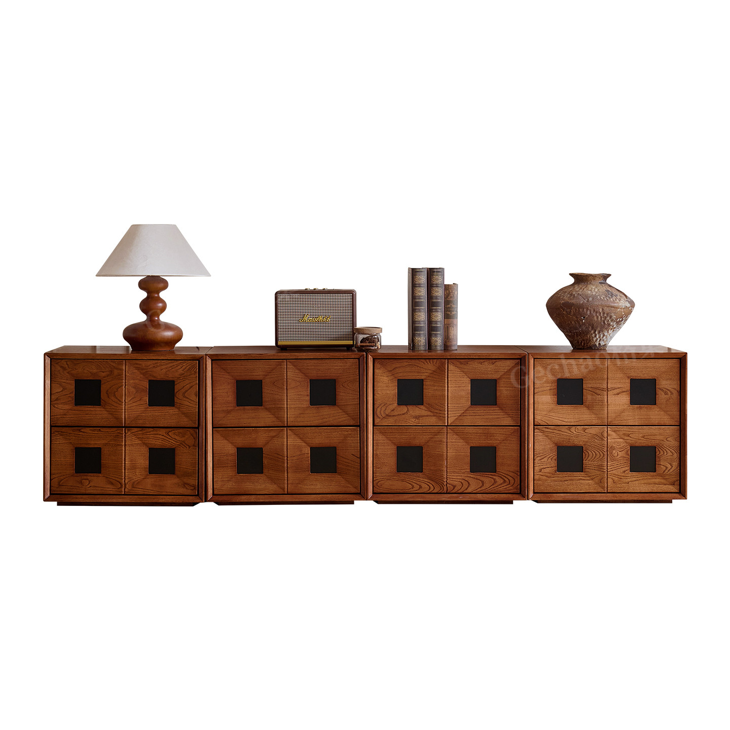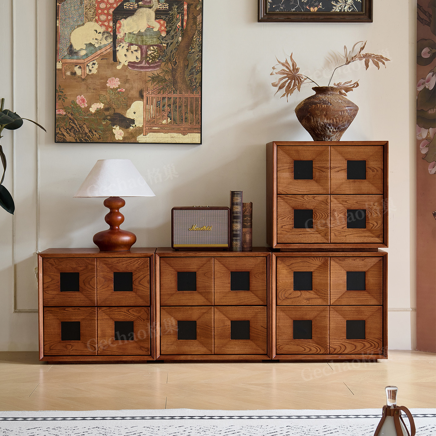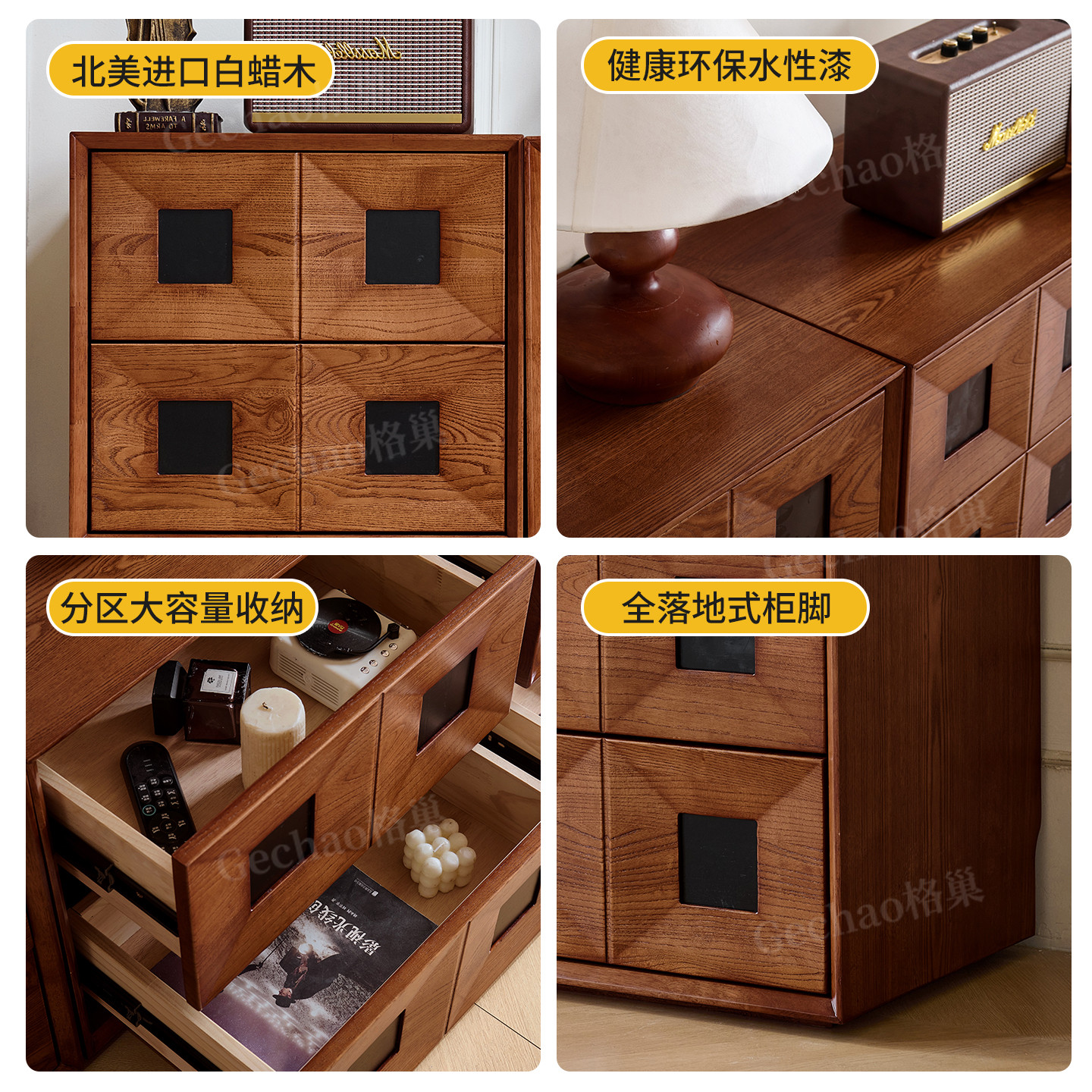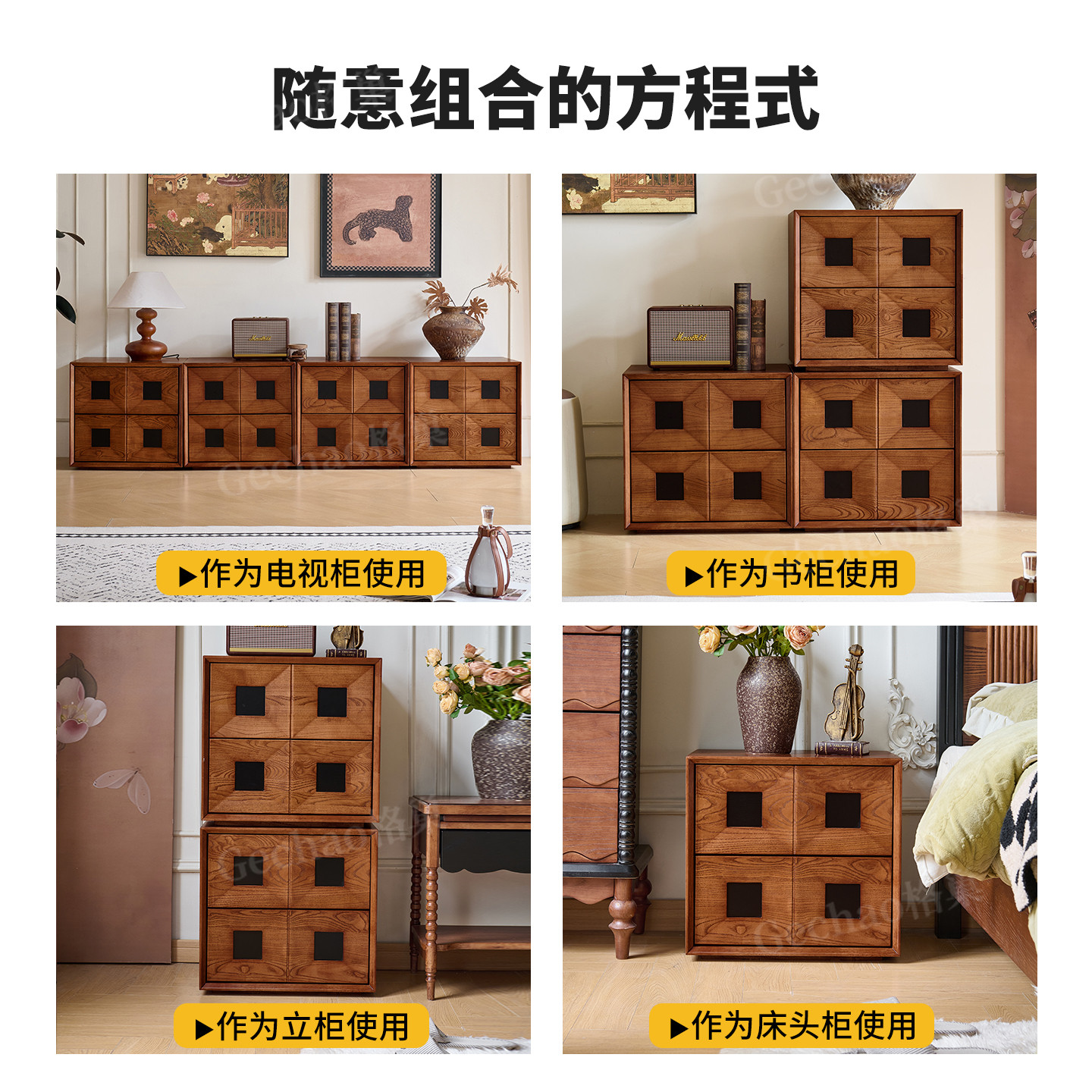 中古风白蜡木实木床头柜卧室小户型自由组合法式复古储物收纳斗柜