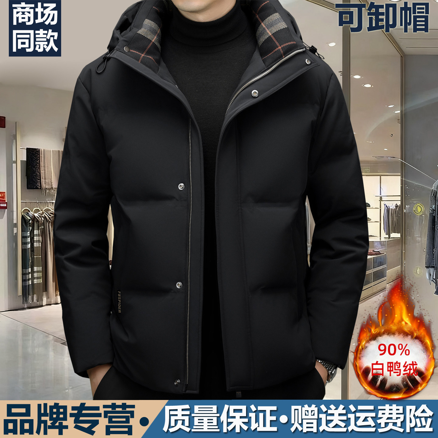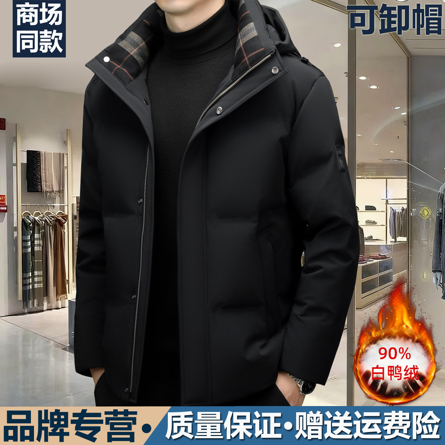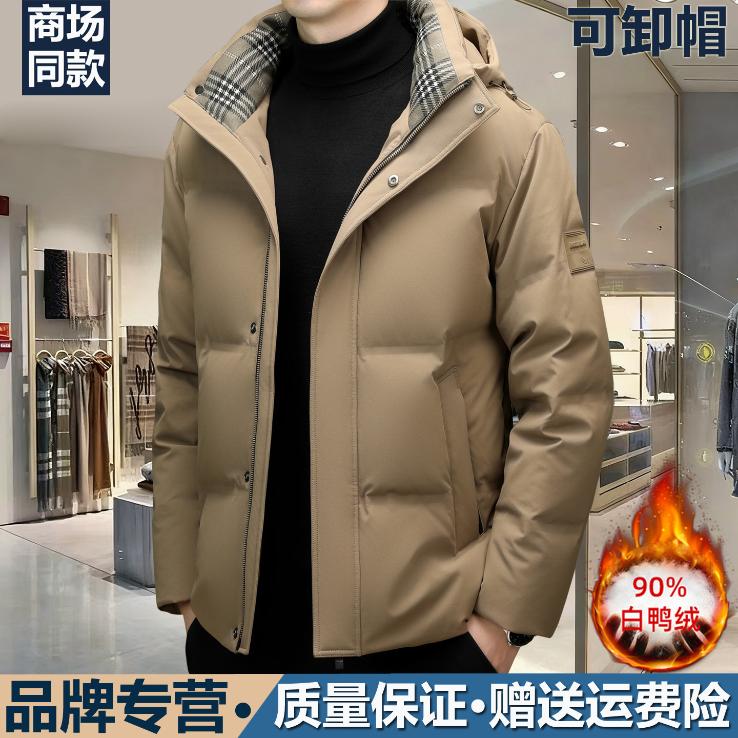 正品保罗拓高端羽绒服男士冬季新款保暖抗寒可卸帽加厚白鸭绒外套