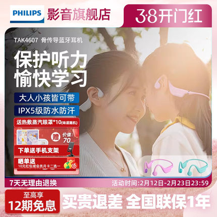 飞利浦TAK4607儿童耳机蓝牙骨传导耳机学习护耳保护听力不入耳机