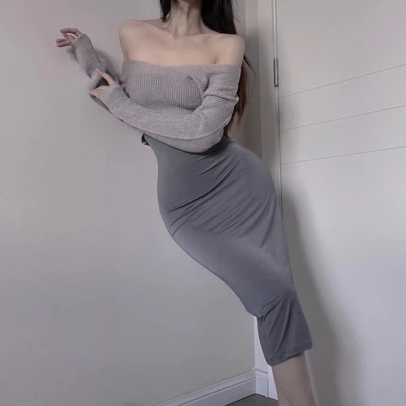 邻家少妇 性感露背绑带包臀裙抹胸连衣裙套装纯欲见男友心机毛衣