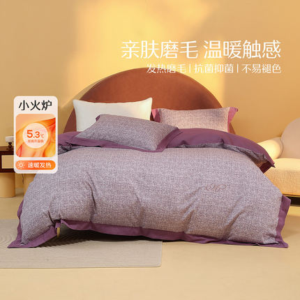 水星家纺全棉磨毛套件抗菌吸湿发热四件套家用床单被套床上用品