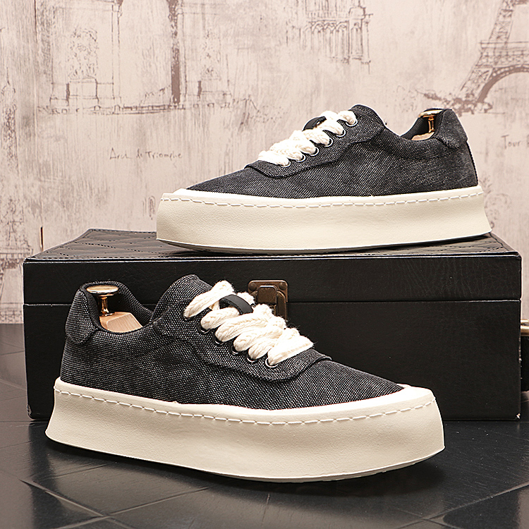 夏季新款超轻男鞋帆布面男士低帮板鞋厚底潮款百搭时尚板鞋系带鞋