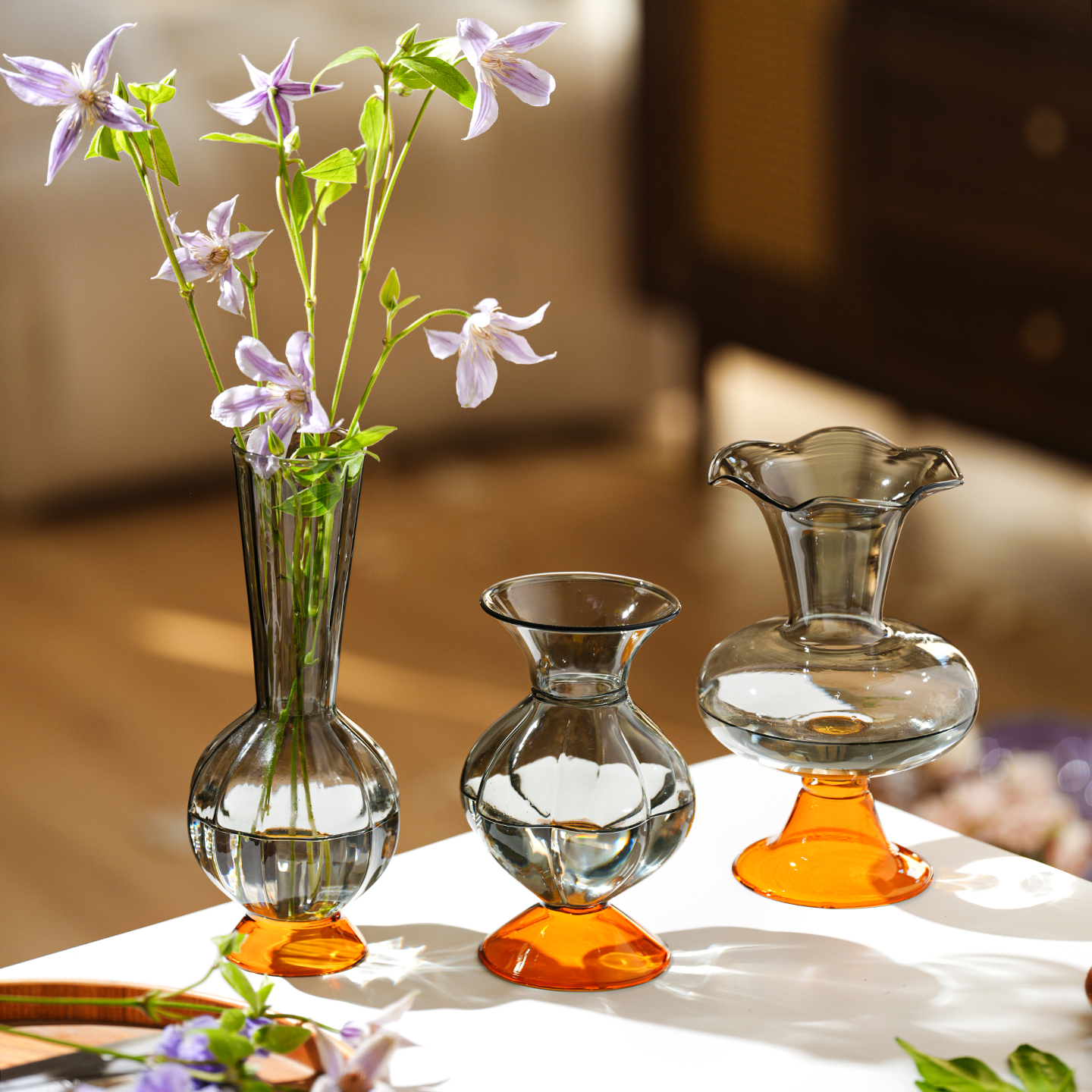 艺术感小花瓶轻奢高级感透明玻璃摆件现代简约风客厅桌面插花装饰