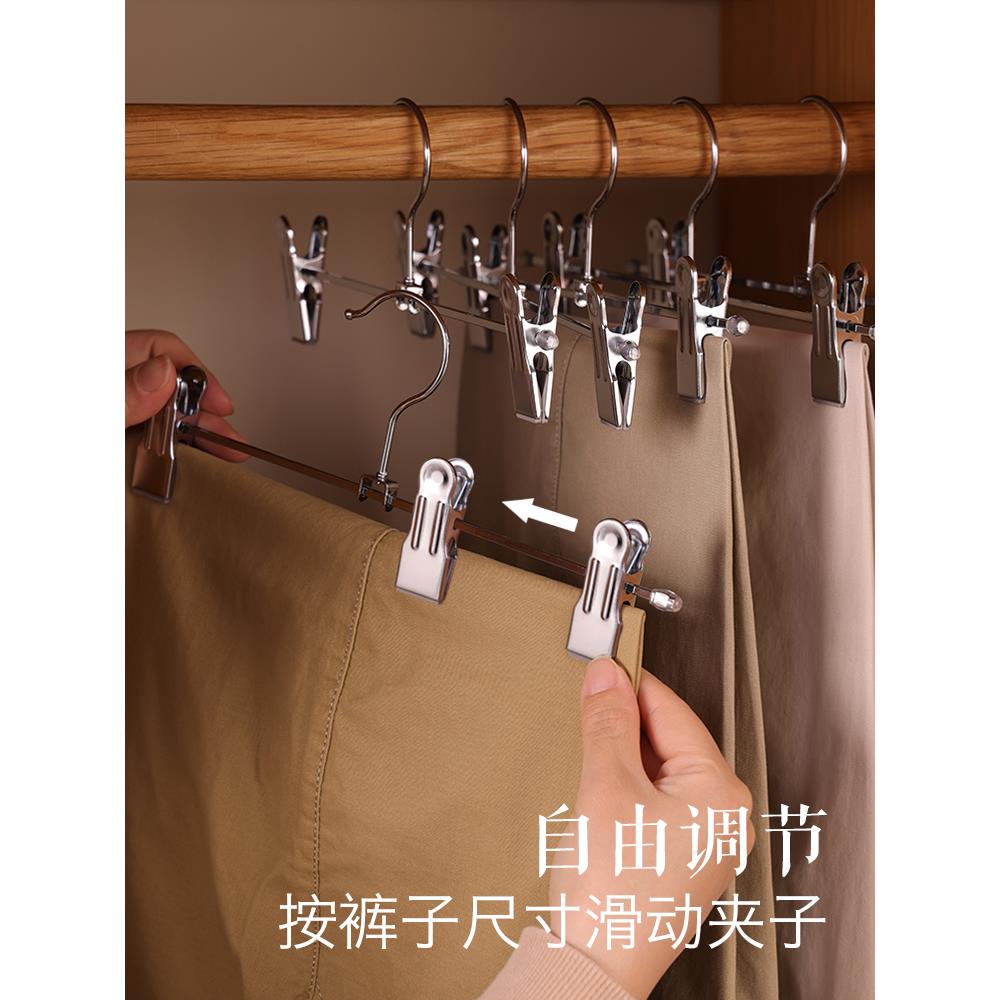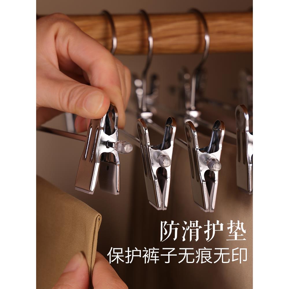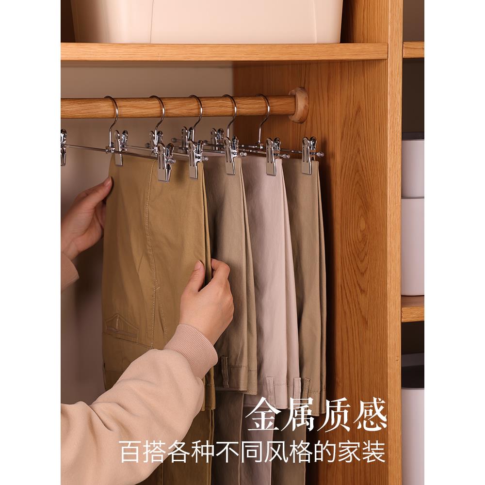 倍町极简家用不锈钢金属裤架可伸缩男女裤夹无痕防滑阳台晾晒裤挂