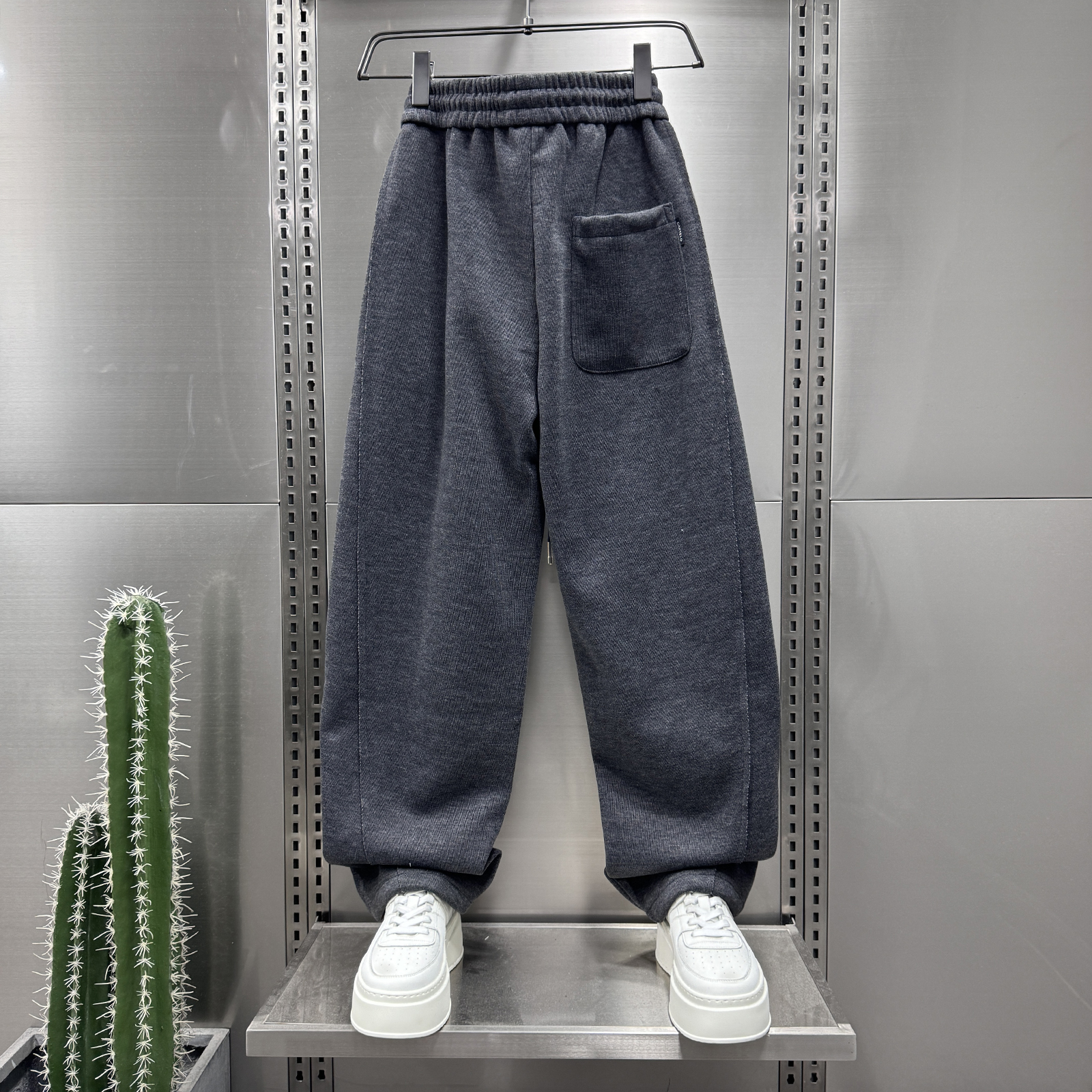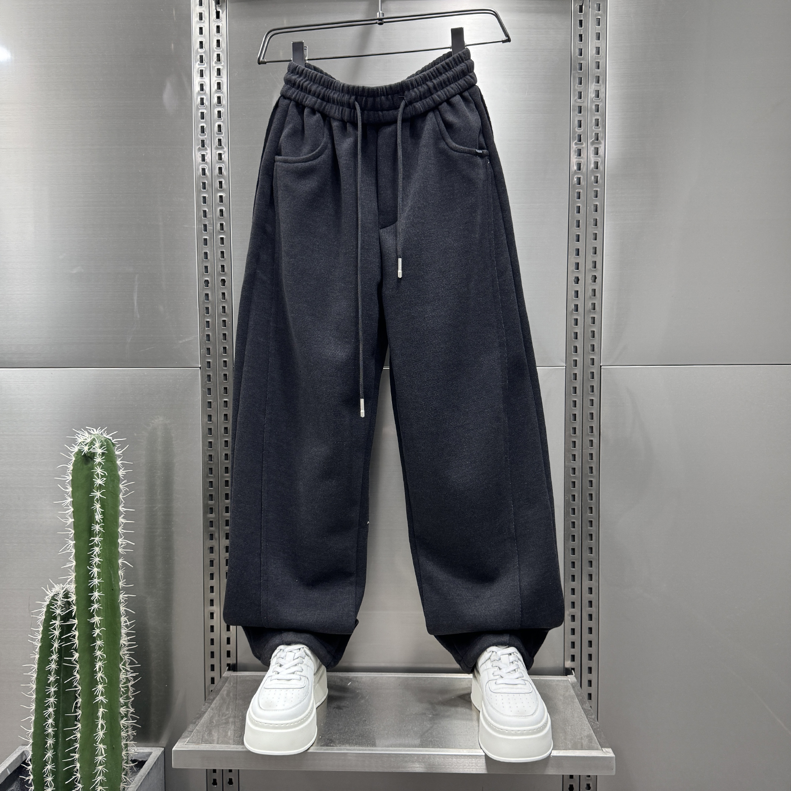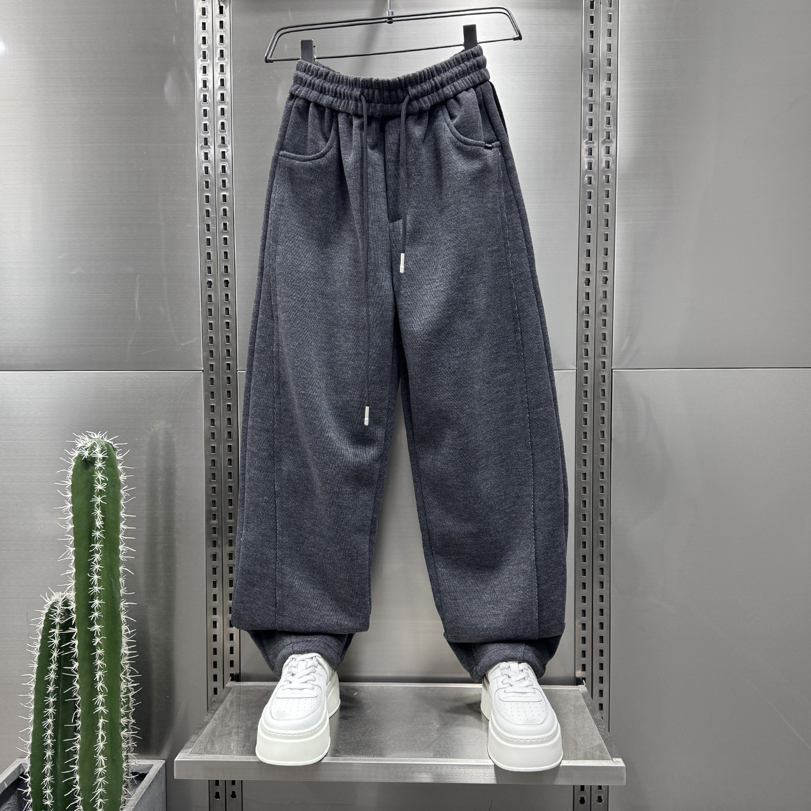 美式简约运动风拼接阔腿休闲裤男2025秋冬新款针织痞帅直筒弯刀裤