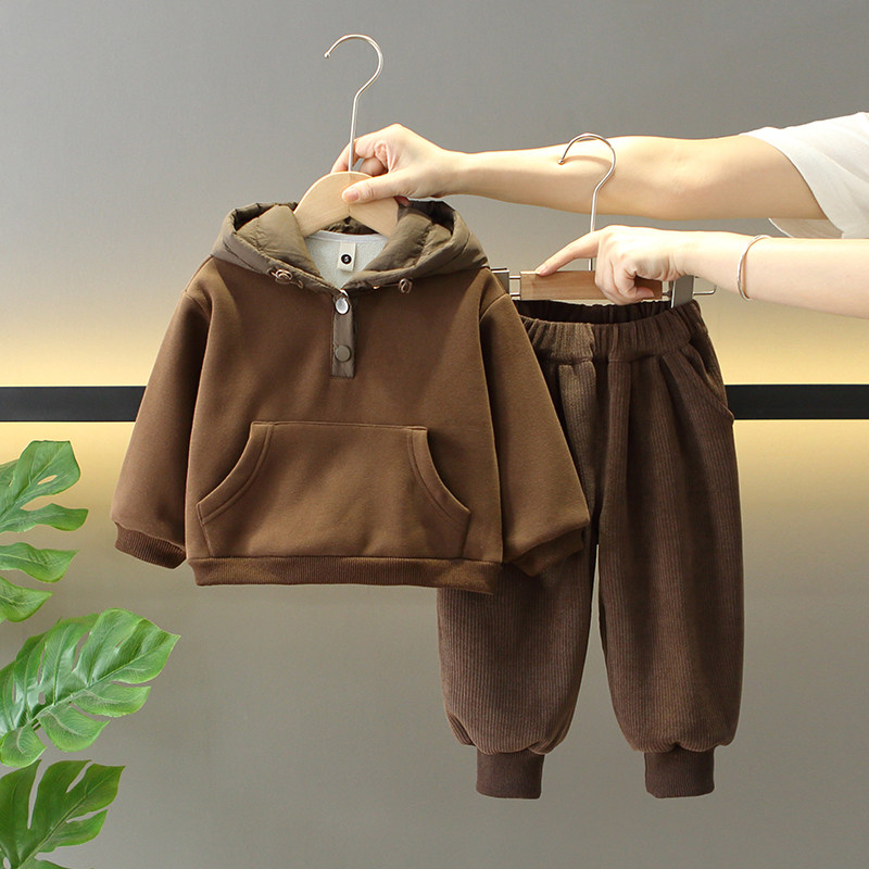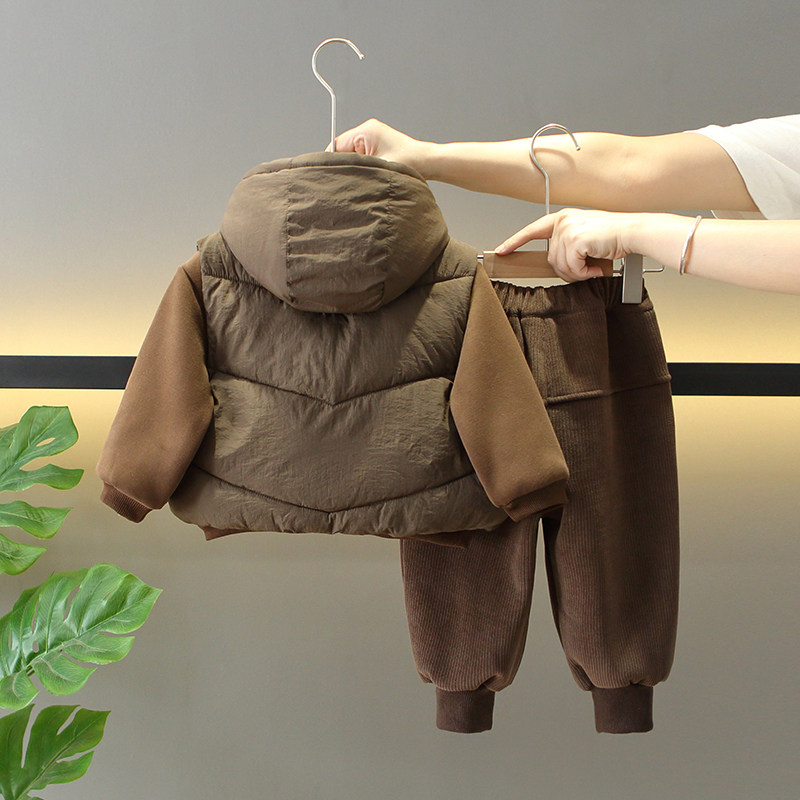 男童冬季加绒套装2025新款儿童洋气加厚冬装宝宝韩版马甲三件套潮