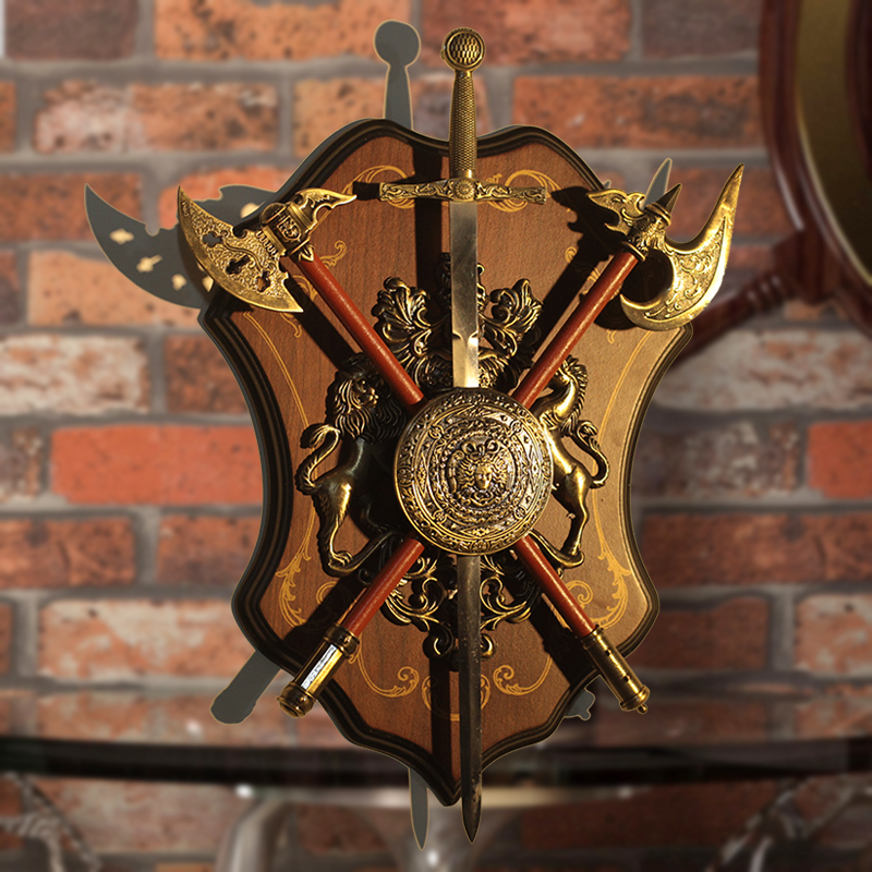 中世纪风盾牌配剑咖啡厅ktv墙饰