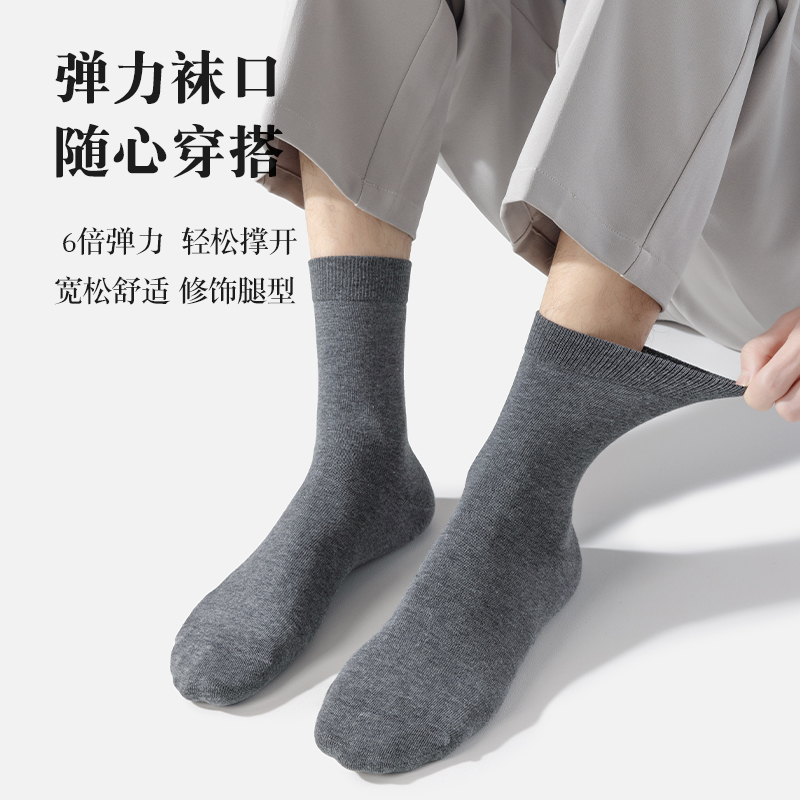 欧蒂爱纯棉袜子男春秋7a抗菌防臭吸汗中筒黑色全棉商务长袜礼盒装