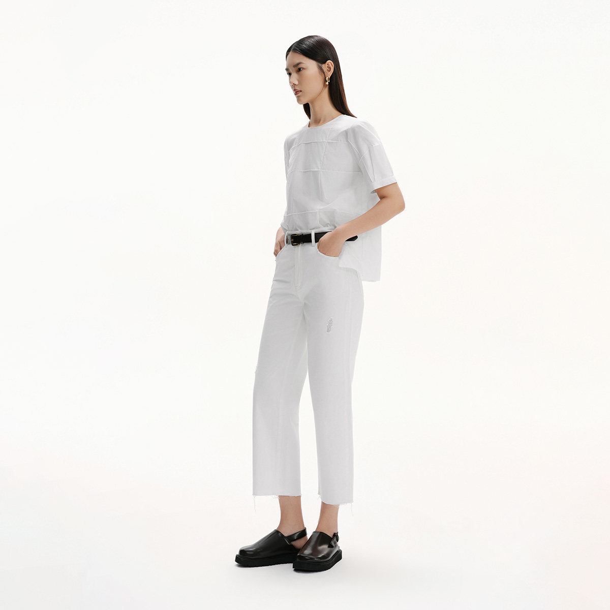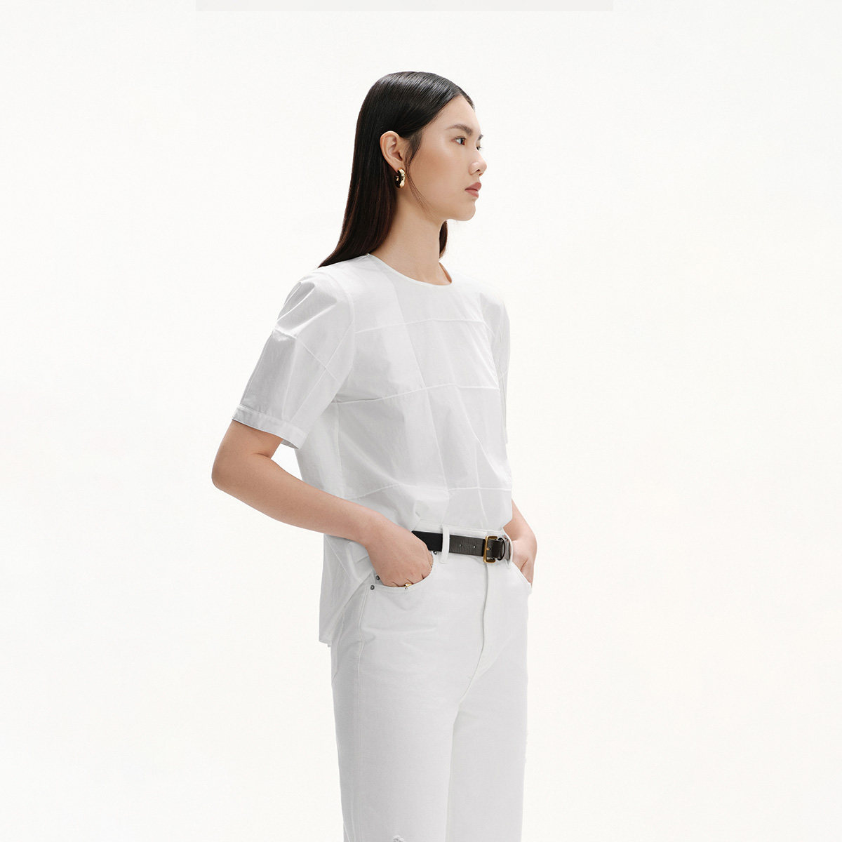 【播奥莱】播商场同款通勤短袖白衬衫女夏宽松气质衬衣BDS2HD2258
