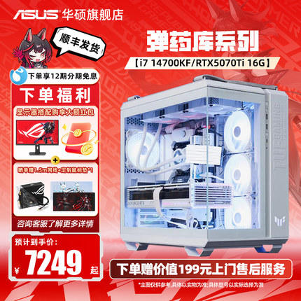 华硕GT502弹药库海景房主机DIY组装机12490F/12600KF/14700KF/RTX5060Ti/5070显卡三角洲游戏台式电脑白色