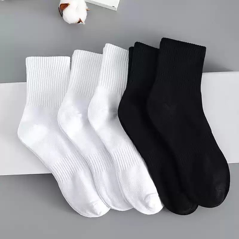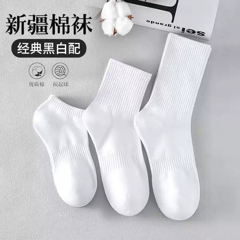 【新疆棉】男士袜子男款长筒夏季薄款中筒纯棉吸汗运动黑白短船袜