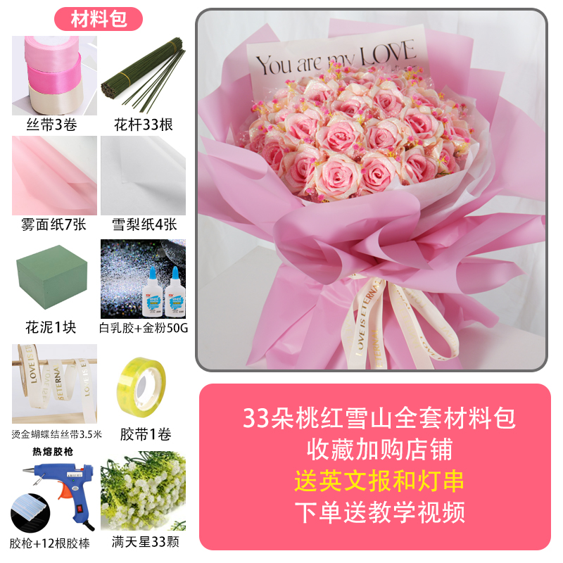 新品手工玫瑰花束diy材料包 33朵全套网红结婚生日创意礼物相思瓣