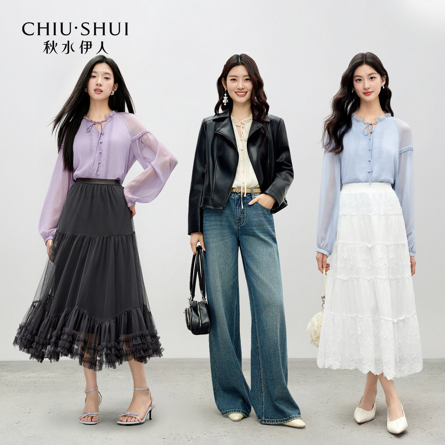 秋水伊人甜美减龄木耳边长袖衬衫