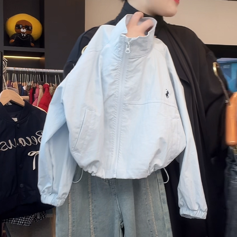 女童秋装外套2025春秋韩版儿童纯色休闲宽松刺绣夹克风衣拉链外套