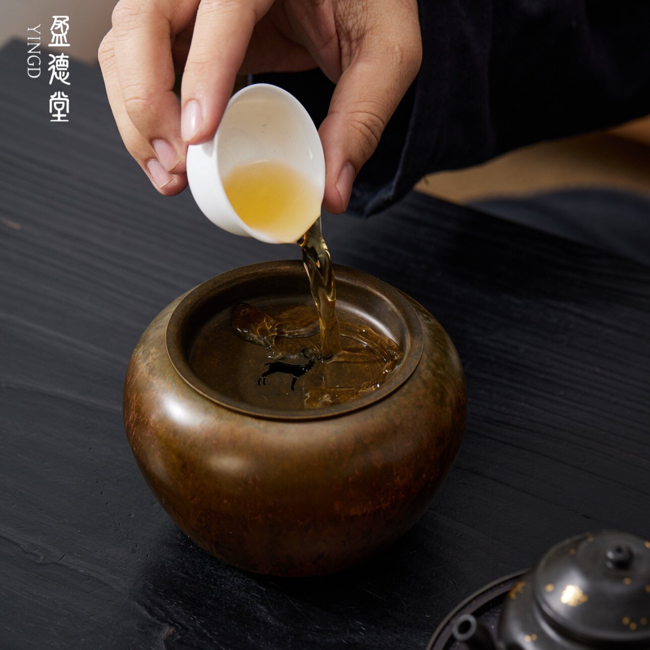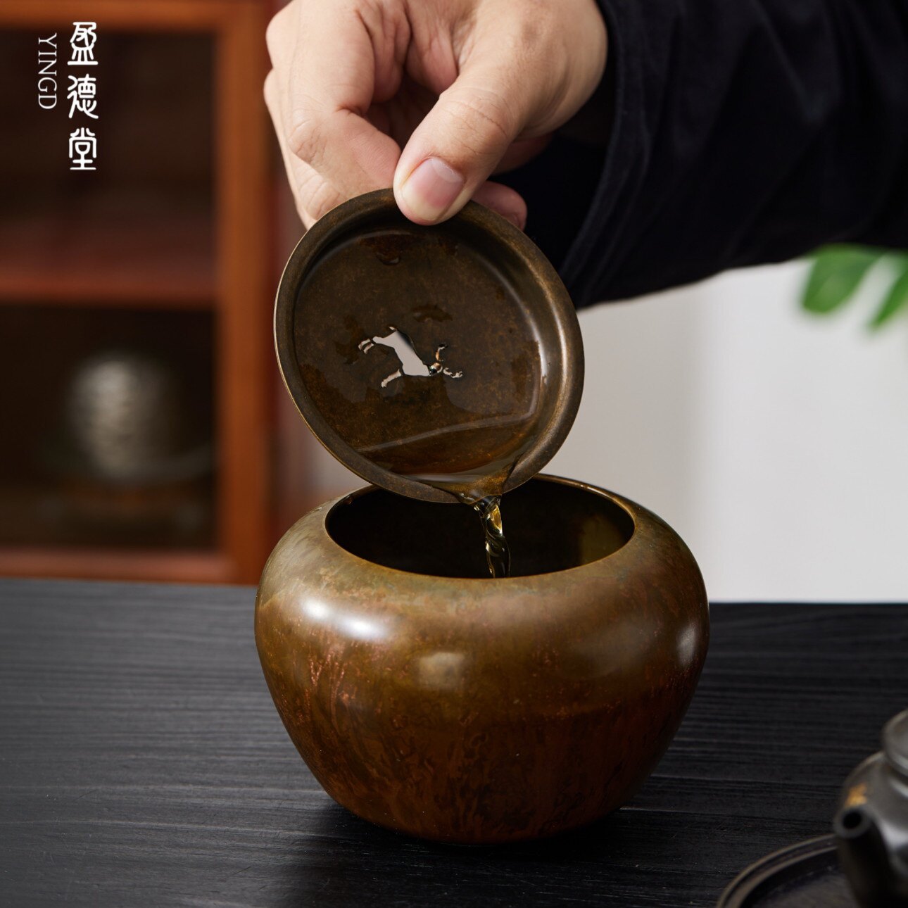 盈德堂手工纯铜建水洗水家用中式复古小号茶洗茶渣缸茶盂茶道零配