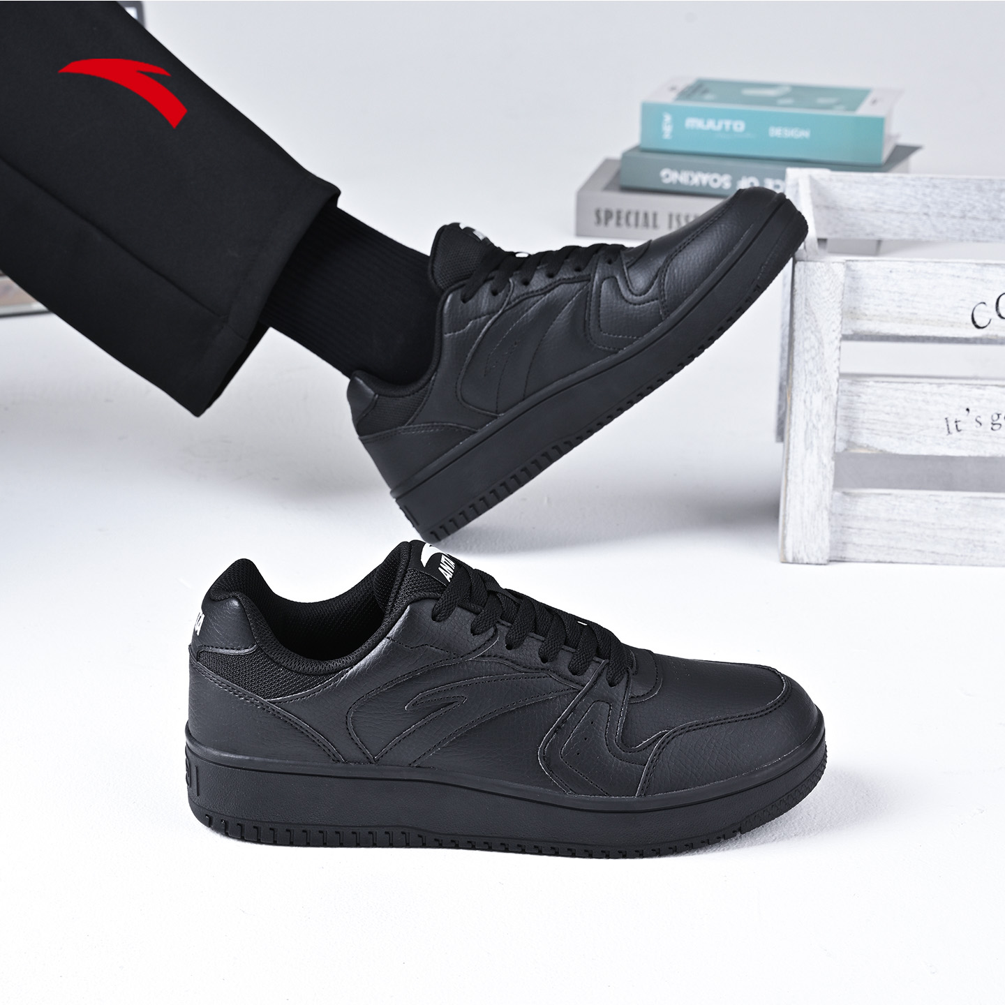 安踏厚底板鞋男子秋冬学生低帮时尚轻便休闲鞋增高复古运动小黑鞋