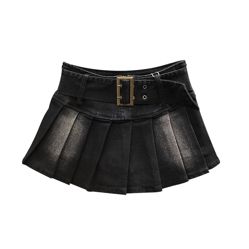黑色高腰牛仔短裙女2025年秋冬时尚洋气减龄辣妹A字百褶半身裙子