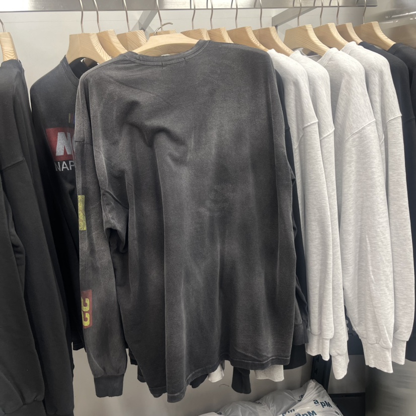 韩国东大门代购2025秋季中性风男女同款大版水洗长袖棉T恤