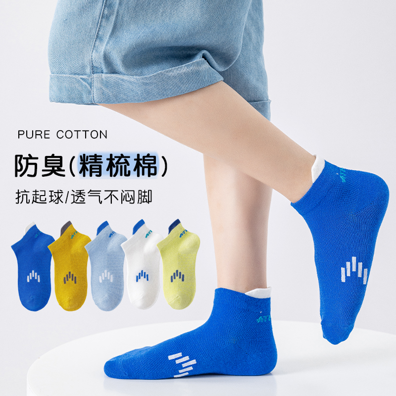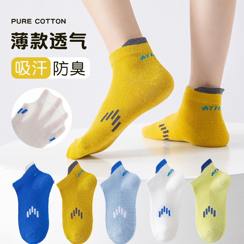 男童袜子夏薄款2025儿童中大童透气防臭网眼纯棉无骨船袜运动短袜