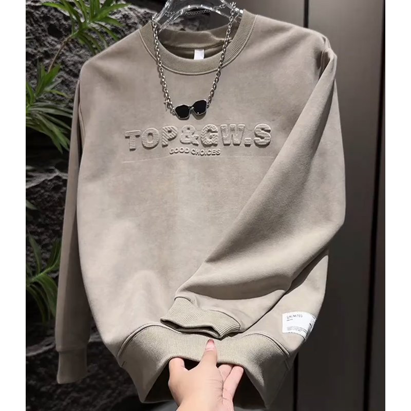 男款卫衣加绒加厚秋冬打底衫韩版时尚扎染痞帅高级感圆领上衣男潮