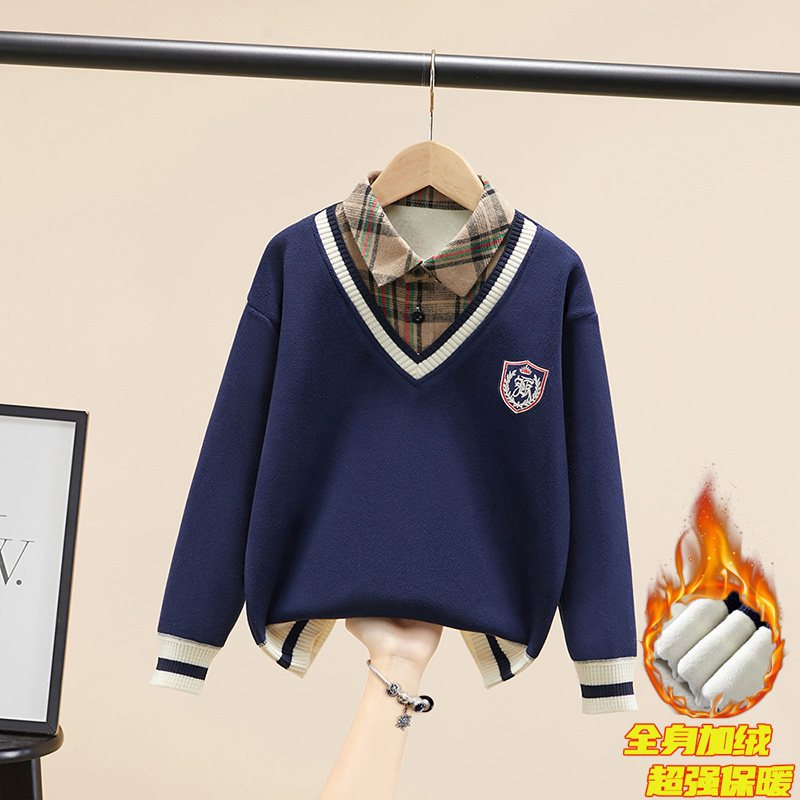 男童学院风假两件毛衣2025秋冬新款休闲百搭中大童加绒洋气毛衣