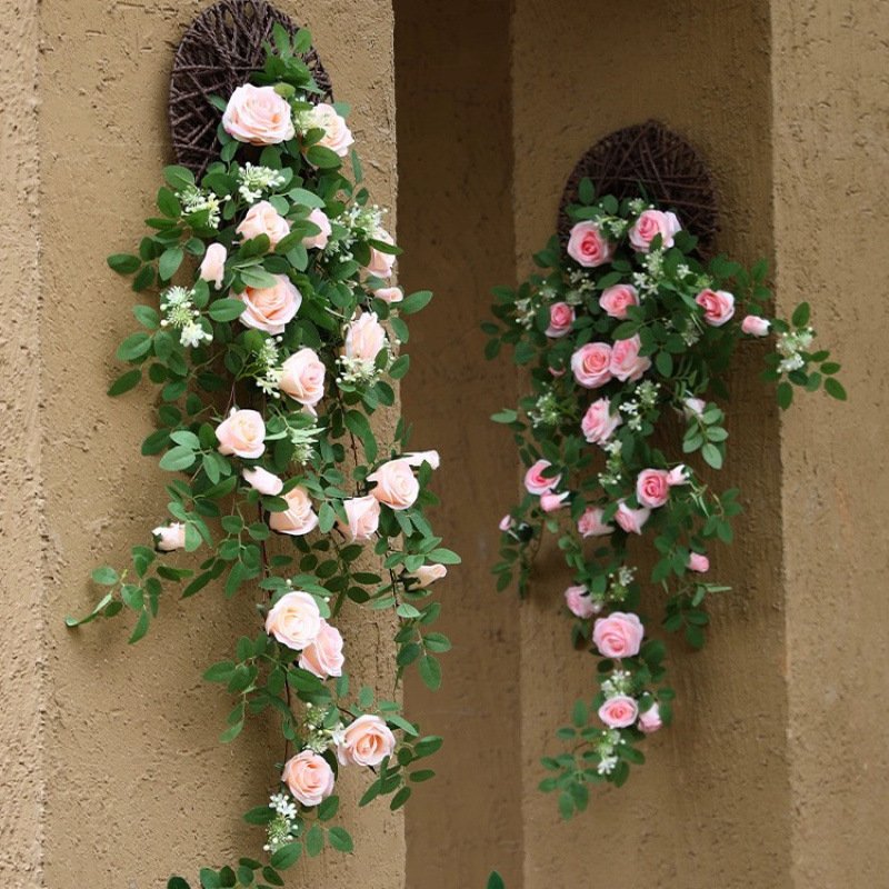 法式仿真玫瑰吊兰绿植假花壁挂花藤客厅室内房间墙面装饰花墙植物