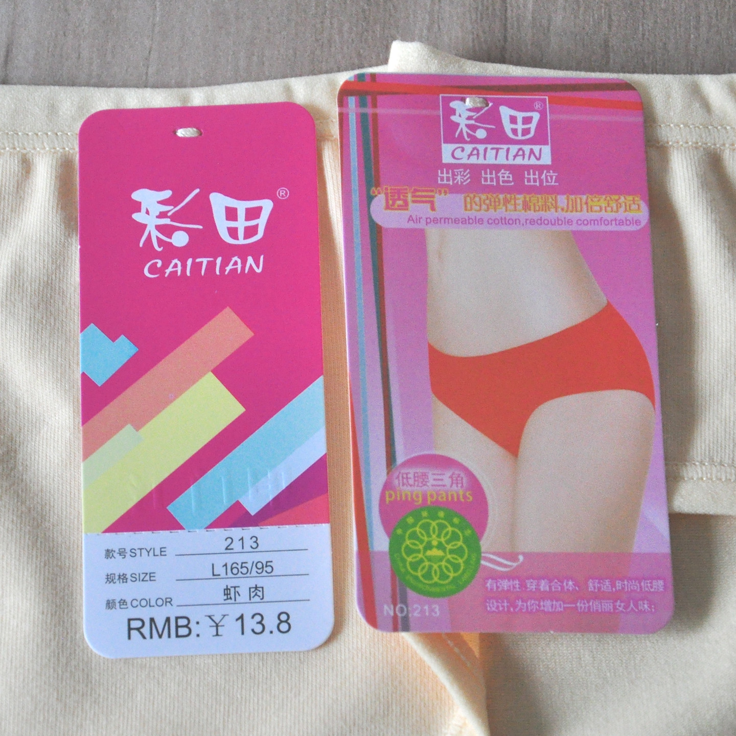 三条装彩田低腰纯色包臀棉质简单款轻薄透气经典213女士内裤