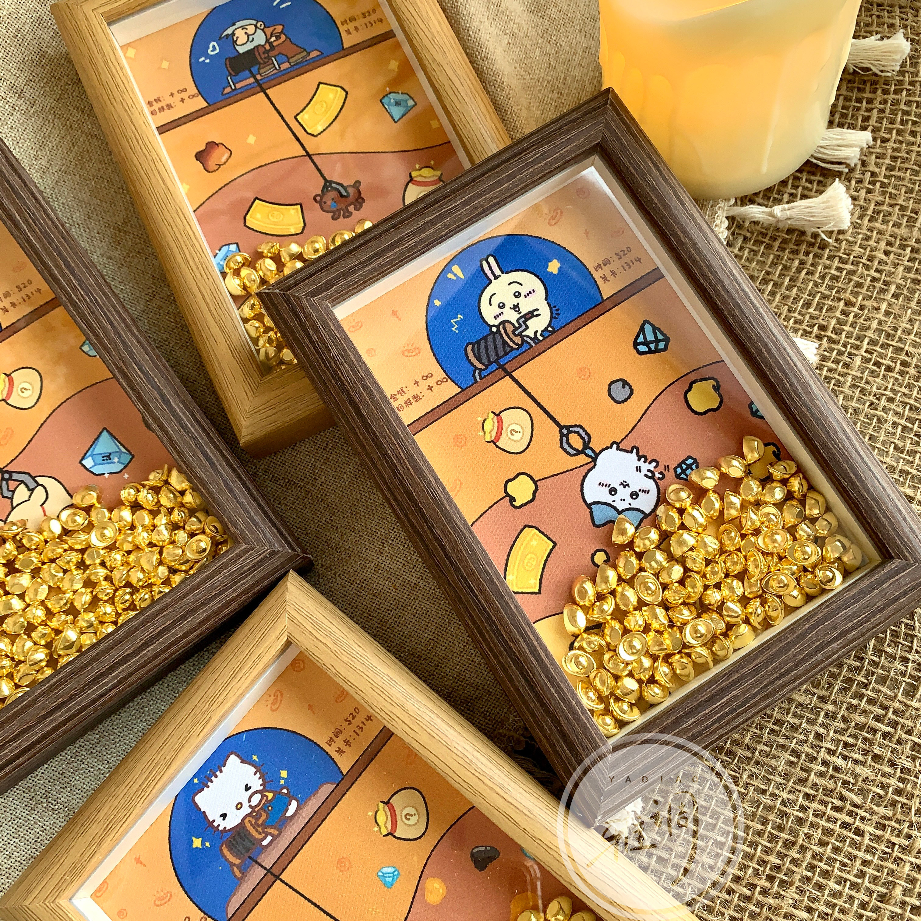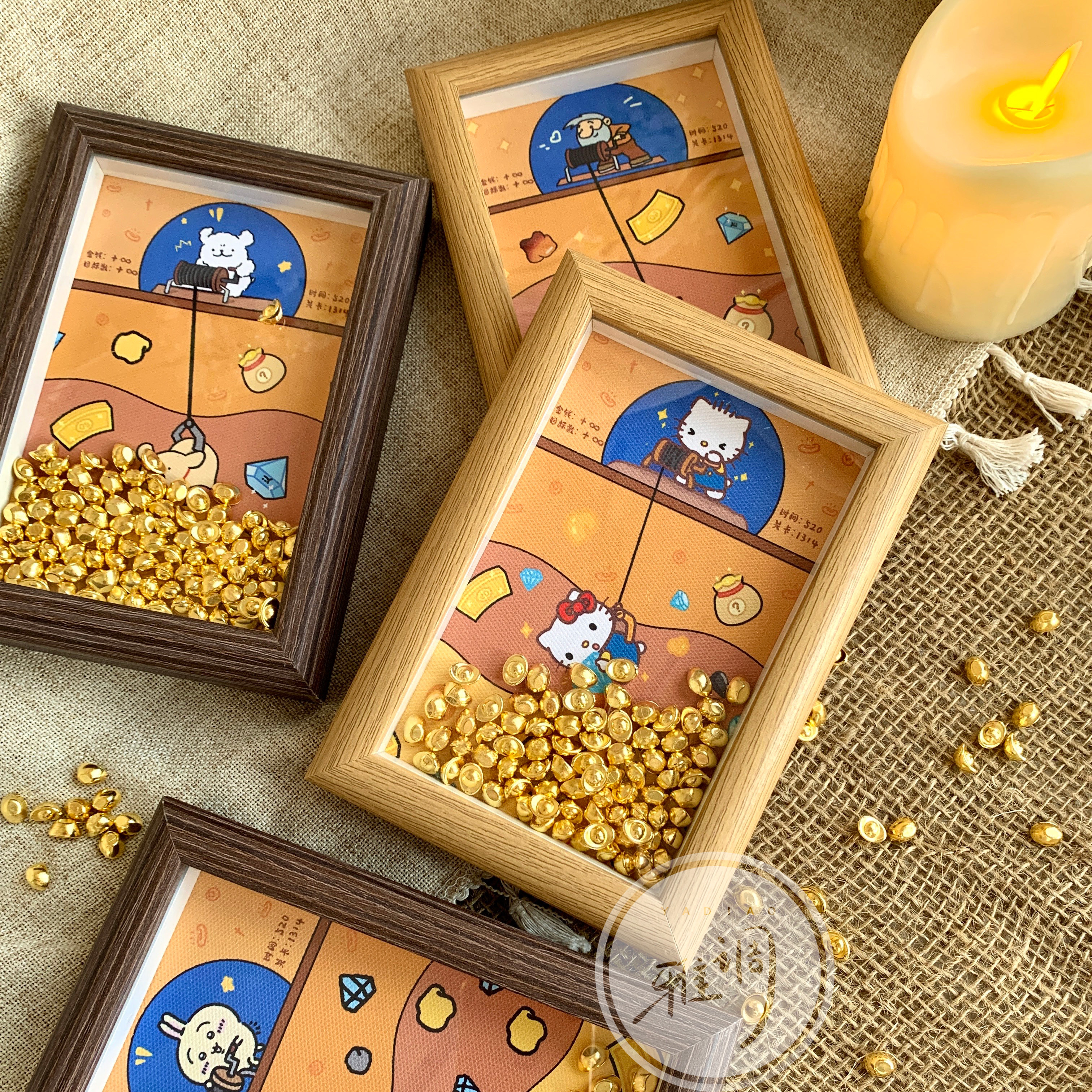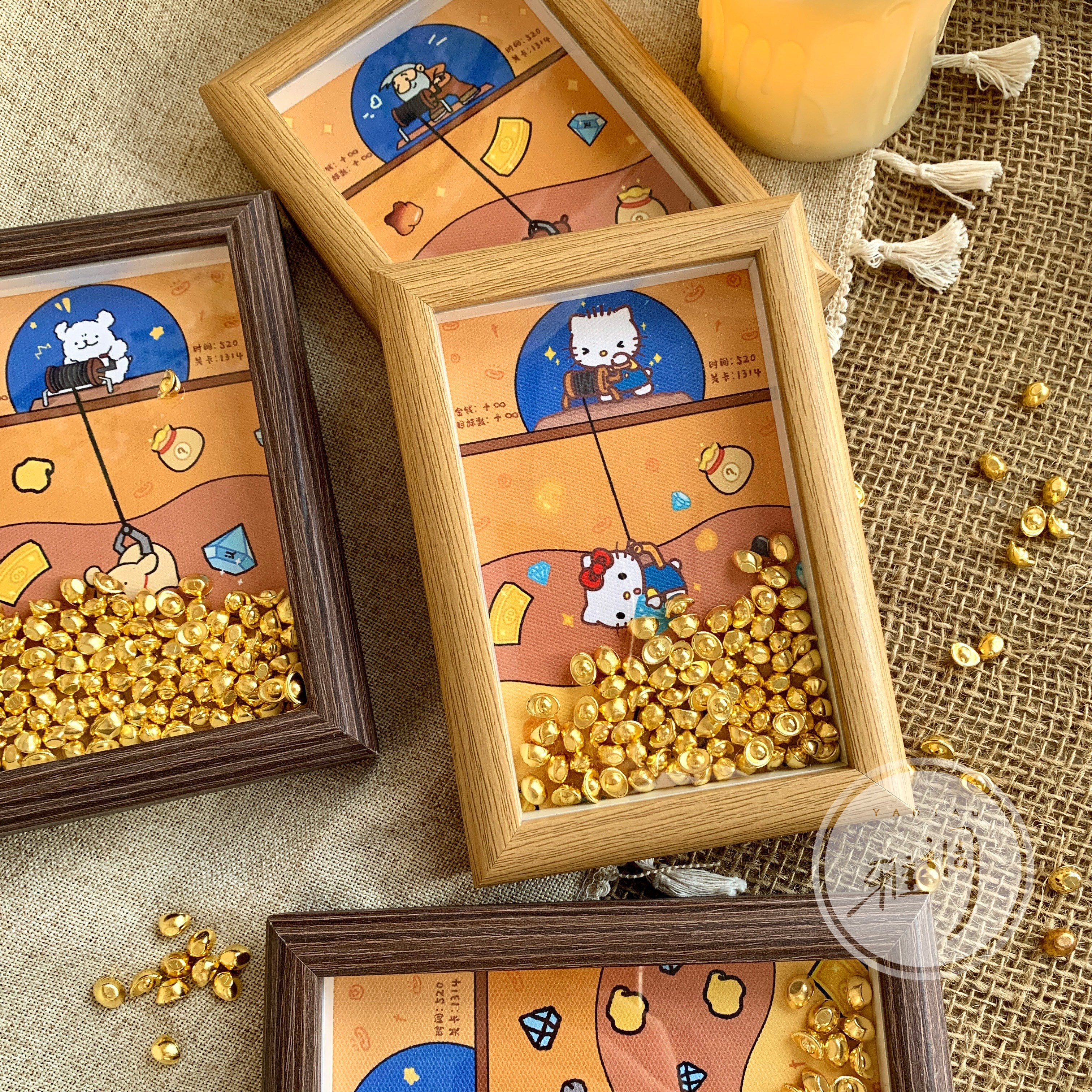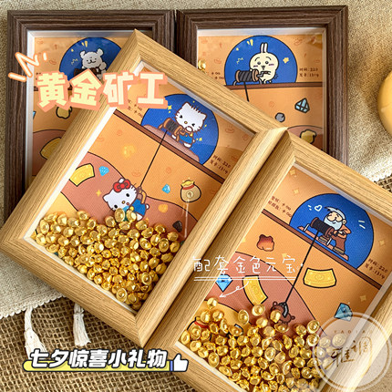 黄金矿工新年礼品桌面小摆台DIY相框装饰画招财金元宝情人节礼物