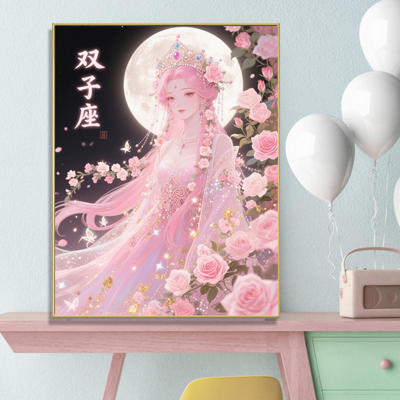 高颜值美少女钻石画十二星座2025新款卡通十字绣客厅卧室满钻风景