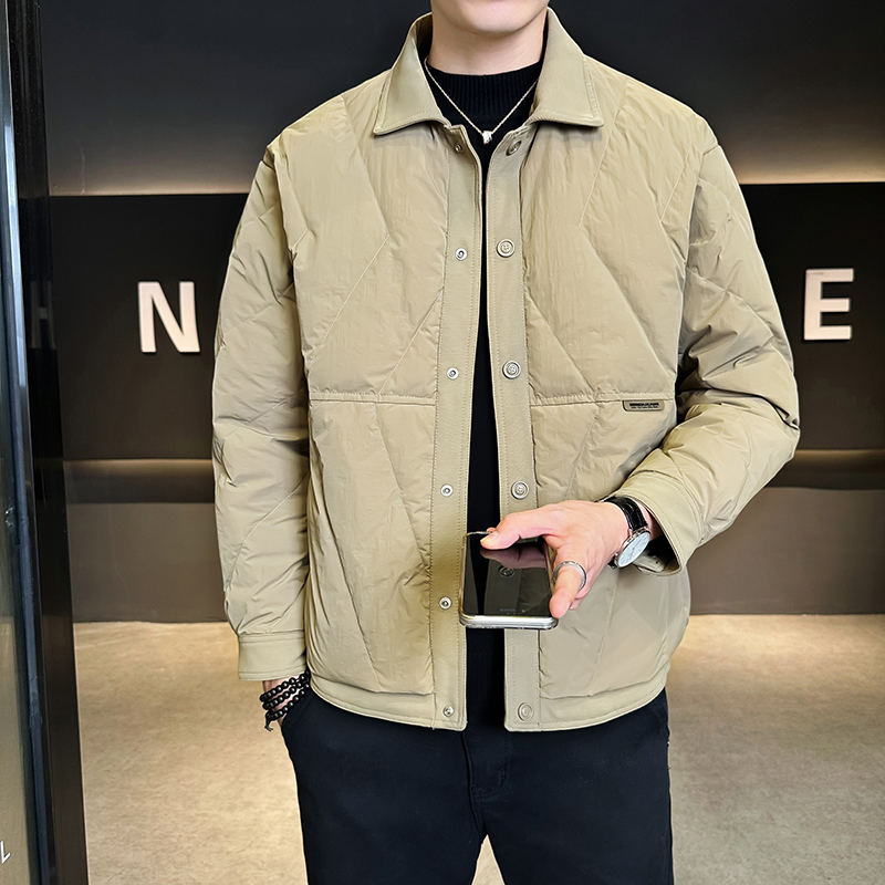 冬季痞帅潮牌工装翻领羽绒服外套男士潮流设计感拼接保暖夹克上衣